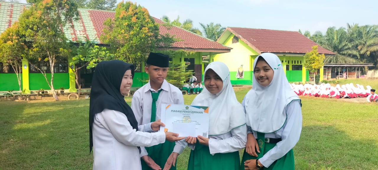 Piagam Penghargaan diserahkan oleh Dra.Nurhaya selaku Kepala Madrasah, didampingi Wakil Kepala Madrasah Bagian Humas, Rita Sari, S.Pd. Pada kesempatan tersebut, Nurhayana menyampaikan apresiasi yang setinggi-tingginya kepada para siswa yang telah berjuang pada ajang tersebut dan kepada guru yang telah membimbing. Ia berharap semoga piagam tersebut dapat digunakan dimasa depan utamanya dalam mendapatkan beasiswa pendidikan lanjutan.