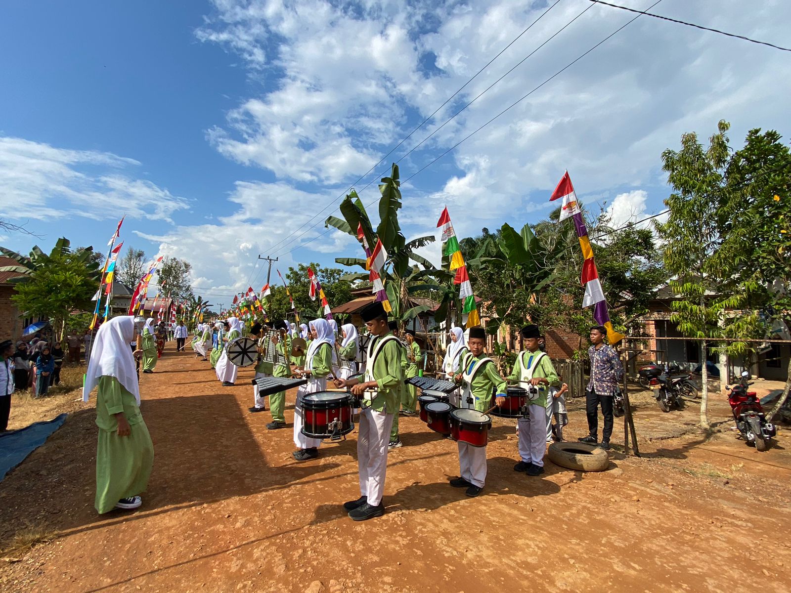 Lubuk Ruso - Drum band MTsN 5 Batang Hari kembali dipercaya kembali memeriahkan pawai ta`aruf pembukaan Musabaqah Tilawatil Qur’an (MTQ) tingkat Desa Jembatan Mas Tahun 2024, Jum’at (02/08) dan tingkat Desa Teluk Ketapang Tahun 2024, Sabtu (03/08)