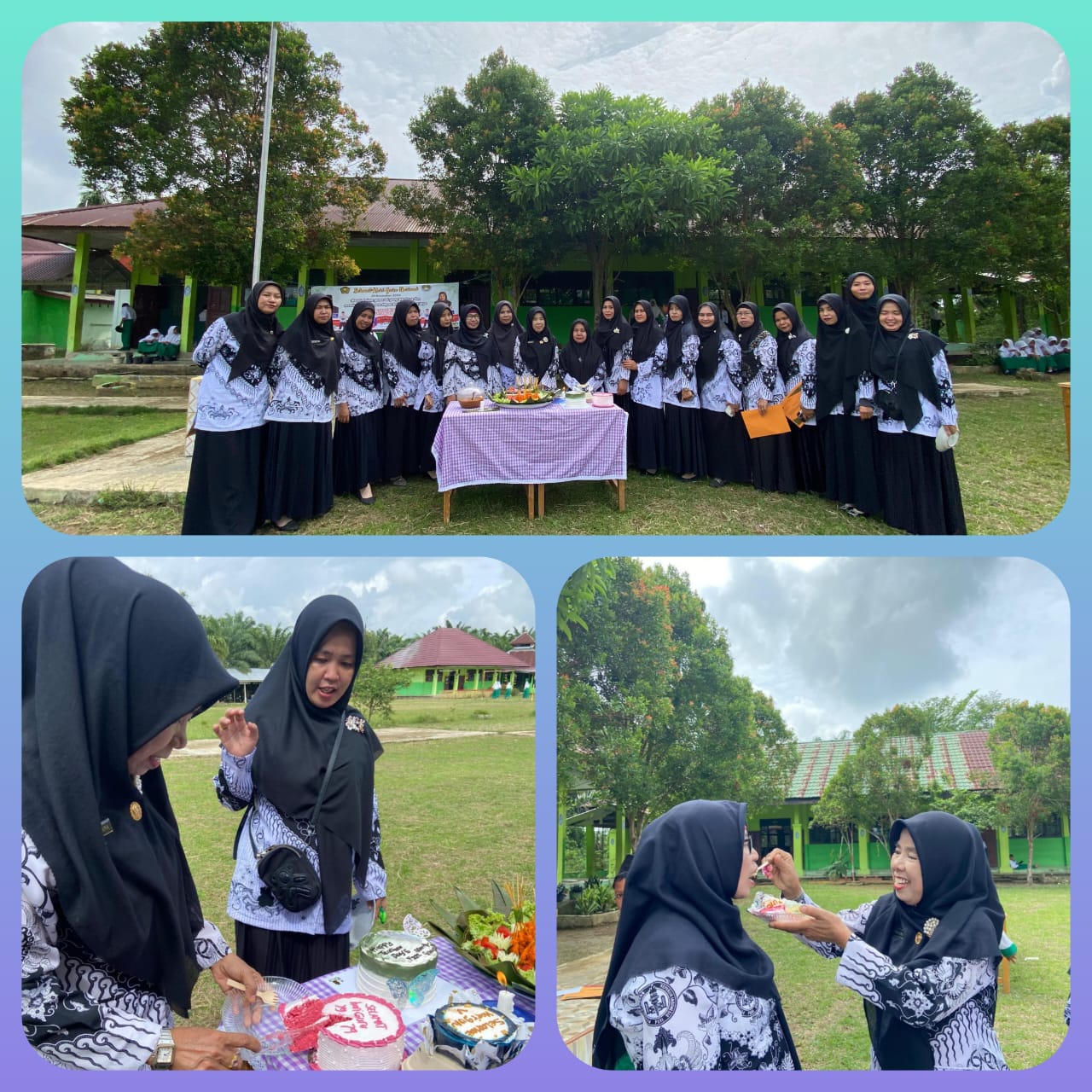 Kemudian pemotongan kue dan tumpeng. Sebagai wujud syukur seluruh guru dan tenaga kependidikan MTsN 5 Batang Hari. Kemudian dilanjutkan dengan makan bersama. Semoga rasa kekeluargaan ini akan tetap terjaga dan personil MTsN 5 Batang Hari akan selalu kompak.