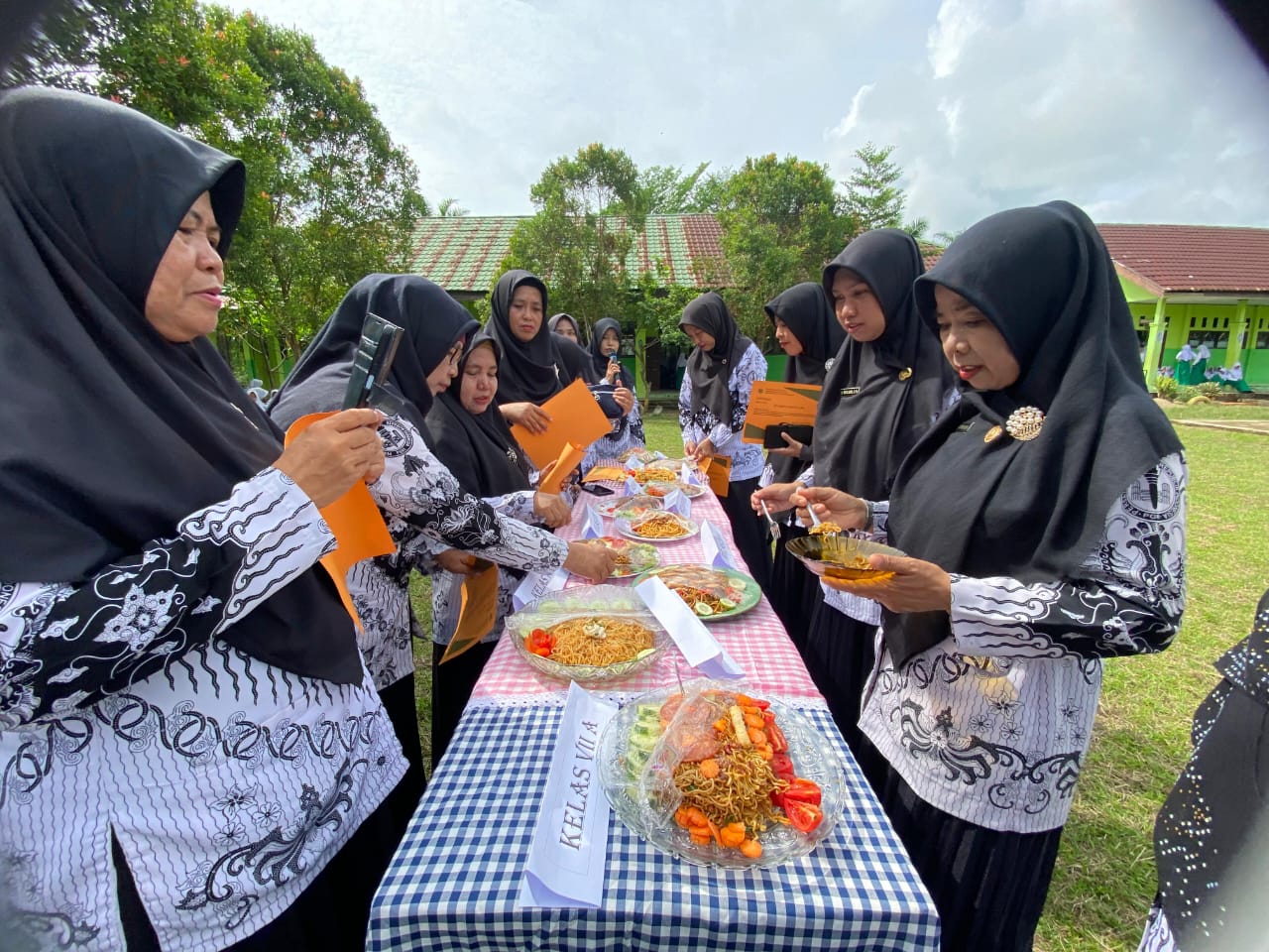 Diakhir acara penilaian lomba masak dengan bahan olahan "mie" oleh setiap kelas. kegiatan ini dilaksanakan dengan tujuan memupuk kekompakan antara peserta didik setiap kelas dan wali kelas masing-masing. Dengan arahan wali kelas, peserta didik memasak dengan kreasi masing-masing kemudian ditampilkan di meja penilaian. Tim penilai yaitu kepala madrasah, wakil kepala semua bidang, dan tenaga kependidikan. Acara demi acara tidak akan berjalan lancar tanpa partisipasi anak-anak OSIM MTsN 5 Batang Hari. Mereka yang berperan aktif dalam menyiapkan dan mengkoordinir jalannya kegiatan hari ini. Terimakasih kami ucapkan kepada anak-anak OSIM MTsN 5 Batang Hari untuk dedikasinya terhadap madrasah. Semoga kita selalu kompak. (Humas)