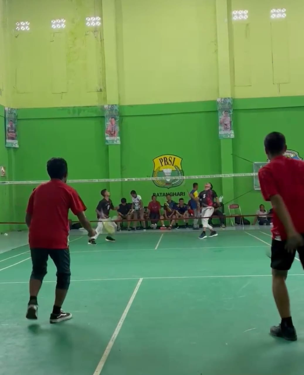 Cabang ini terdiri ganda putra. Dalam hal ini diwakili oleh Gunawan, S. Pd (majelis guru) dan Nurul Ikhsan, S.Pd.I (staf TU). Tim badminton MTsN 5 Batang Hari kali ini berhadapan dengan tim badminton Kemenag Kabupaten Batang Hari. Sebelum tampil kedua peserta sudah latihan dan merancang strategi untuk menghadapi tim lawan.
