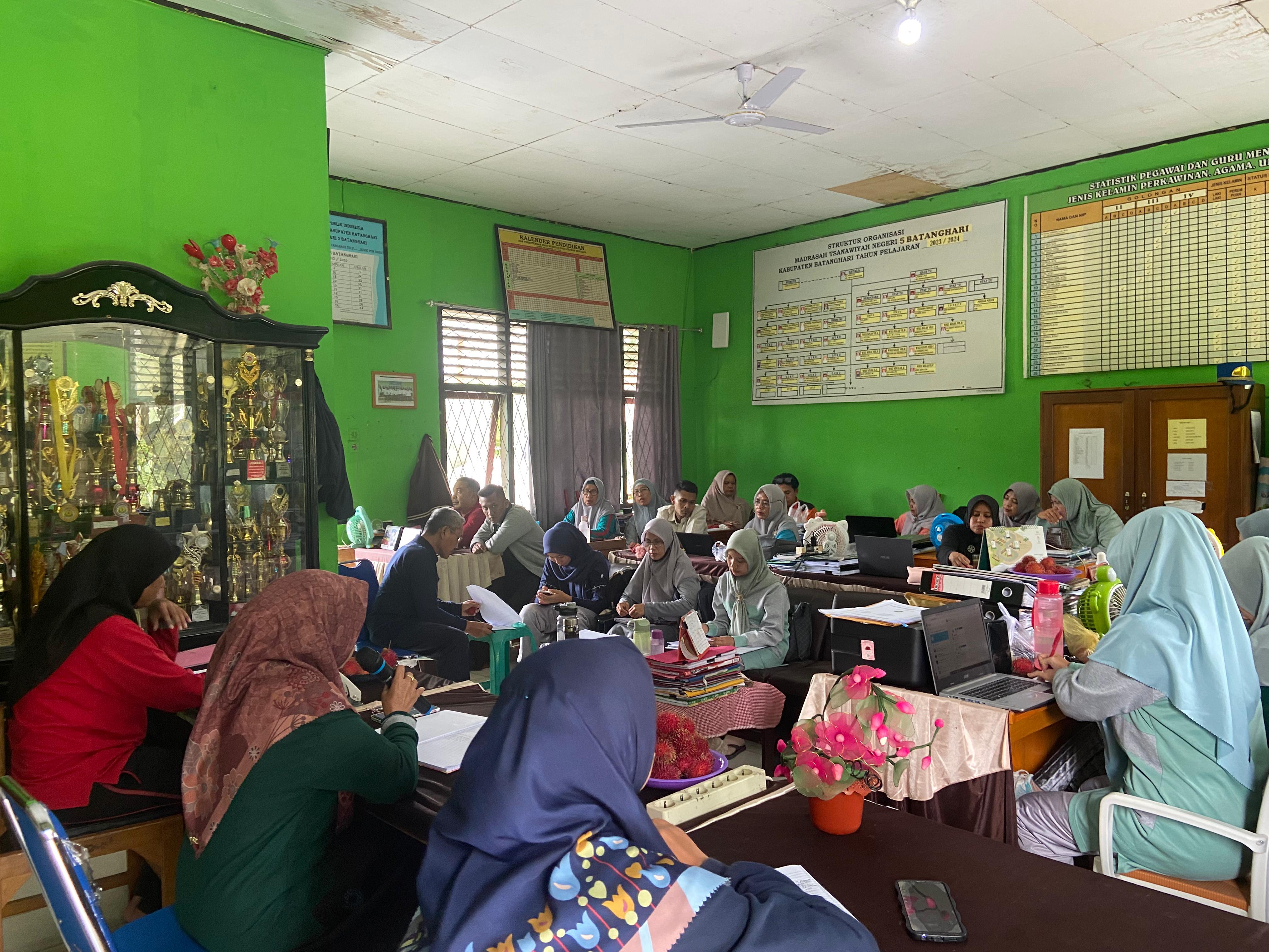 Batang Hari (Batang Hari)-------- Mengawali Tahun baru 2025 sekaligus awal semester genap tahun pelajaran 2024/2025, MTsN 5 Batang Hari menggelar rapat awal semester dan evaluasi pembelajaran semester ganjil tahun ajaran 2024/2025. Rapat digelar di ruang kantor MTsN 5 Batang Hari pada Sabtu (11/01).Bertindak sebagai pemimpin rapat adalah Dra. Nurhayana selaku kepala madrasah.