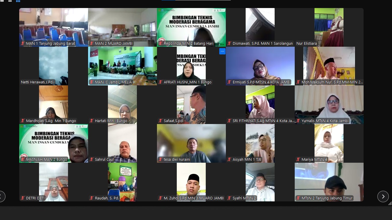 Lubuk Ruso (MTsN 5 Batang Hari) --- MTsN 5 Batang Hari turut berpartisipasi dalam “Kegiatan Kurikulum dan Moderasi Beragama†2025 melalui zoom. Kegiatan yang diadakan oleh pihak Kantor Wilayah Kementerian Agama Provinsi Jambi secara daring melalui platform zoom bagi seluruh madrasah di Provinsi Jambi(17/01/2025).