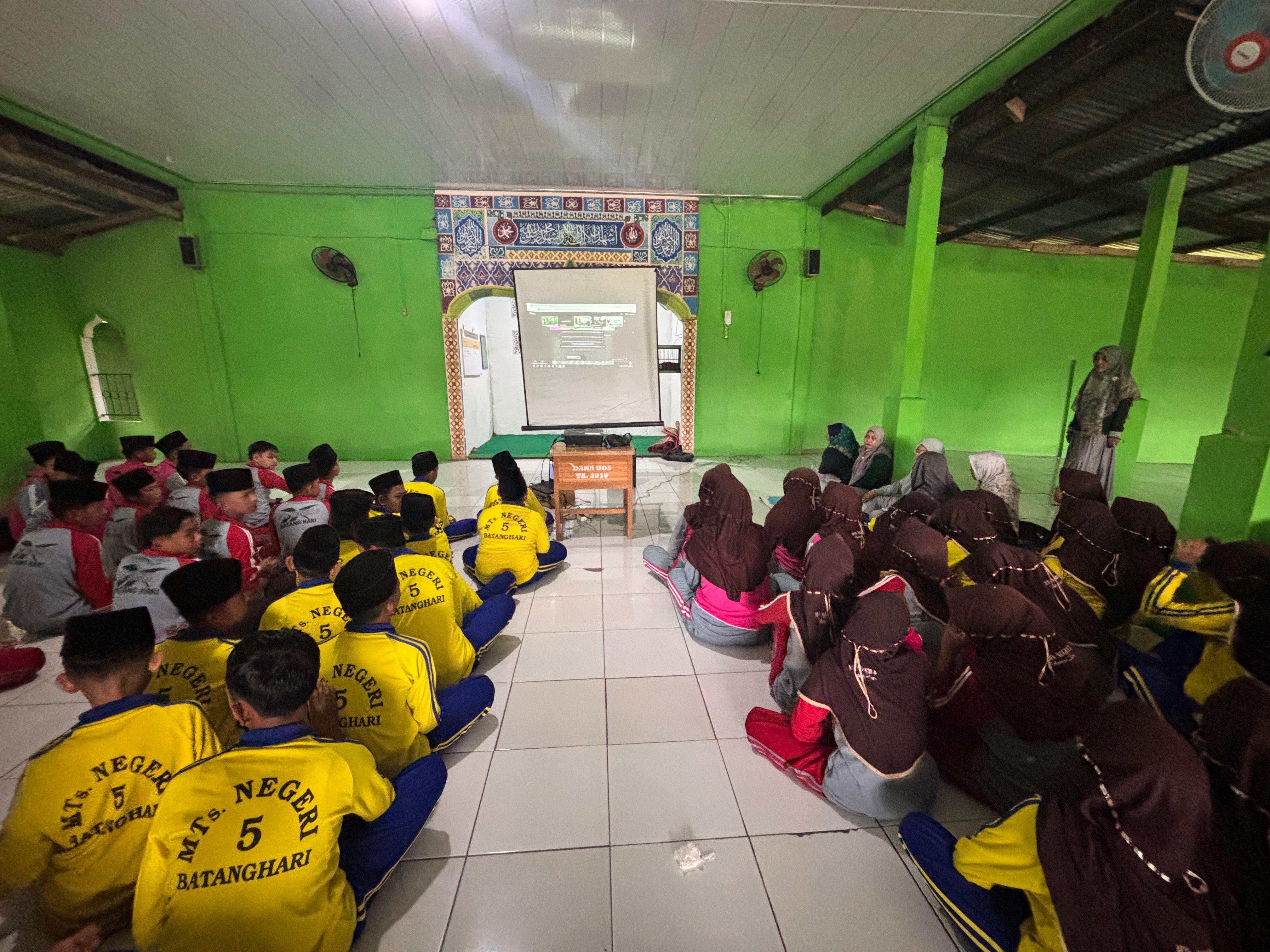 Lubuk Ruso (MTsN 5 Batang Hari) --- Dalam upaya mendukung penguatan kurikulum berbasis moderasi beragama, MTsN 5 Batang Hari kembali mengikuti kegiatan nasional bertajuk “Kurikulum dan Moderasi Beragama†pada Sabtu, 18 Januari 2025. Acara yang diselenggarakan secara daring melalui Zoom Meeting ini dimulai pukul 08.00 WIB dan dihadiri oleh kepala madrasah, guru, staf TU, serta siswa-siswi MTsN 5 Batang Hari. Kegiatan ini diikuti bersama serentak di Musholla Miftahul Jannah.