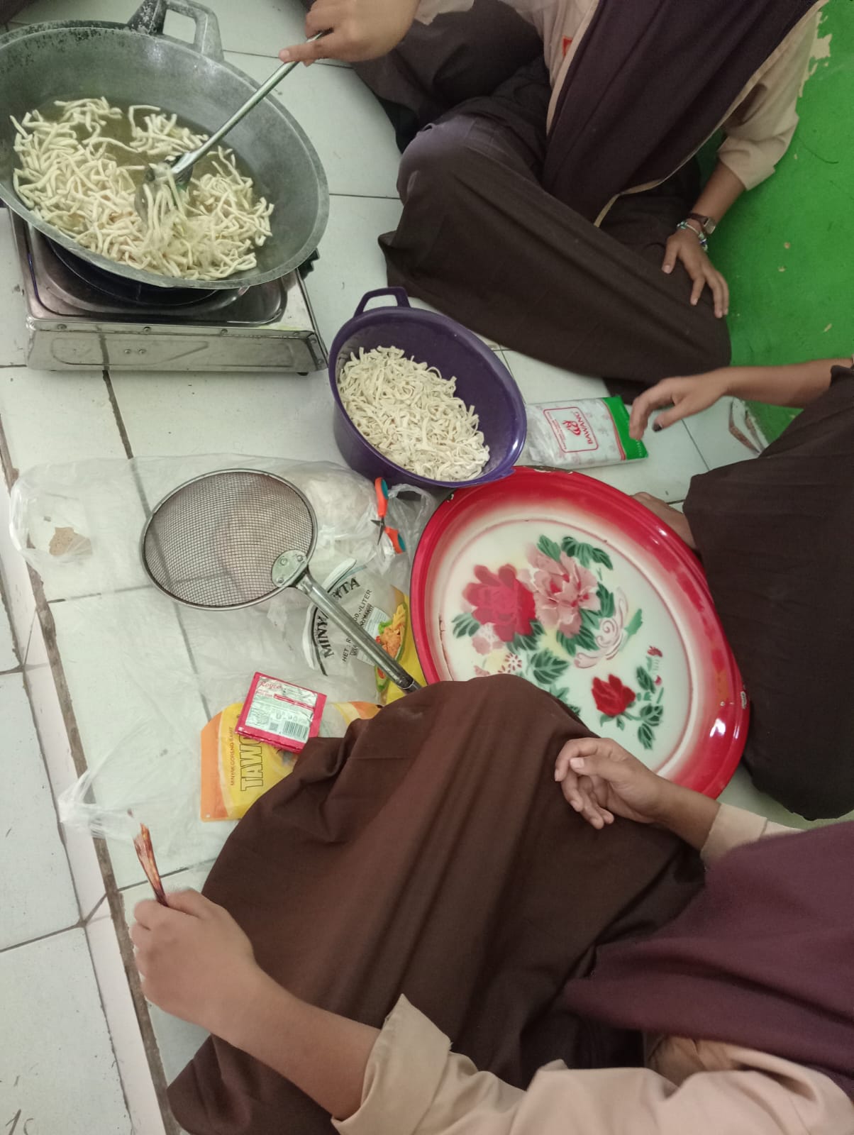 Lubuk Ruso (MTsN 5 Batang Hari) --- Siswa Kelas VIIIC MTsN 5 Batang Hari membuat olahan makanan ringan yaitu keripik bawang dalam Proyek Penguatan Profil Pelajar Pancasila (P5) Fase D pada tema kewirausahaan.