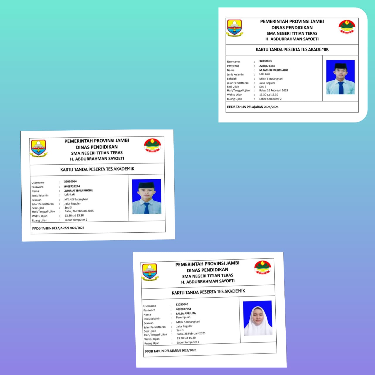 Hari ini ketiga siswa MTsN 5 Batang Hari ini mengikuti tahapan terakhir dari rangkaian seleksi yaitu Tes Akademik dilaksanakan dengan sistem CAT. Hal ini menandakan bahwa mereka dinyatakan LULUS pada tahap sebelumnya.