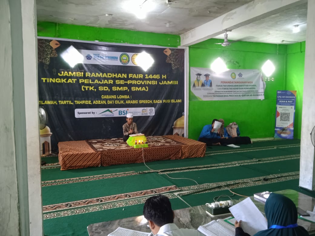 Lubuk Ruso (MTsN 5 Batang Hari) --- Siswa MTsN 5 Batang Hari mengikuti lomba Jambi Ramadhan Affairs 2025 yang diselenggarakan oleh LPQ-AR RAHMAN bersama FAKULTAS ADAB DAN HUMANIORA serta FAKULTAS USHULUDDIN DAN AGAMA UIN SUTHA JAMBI.
