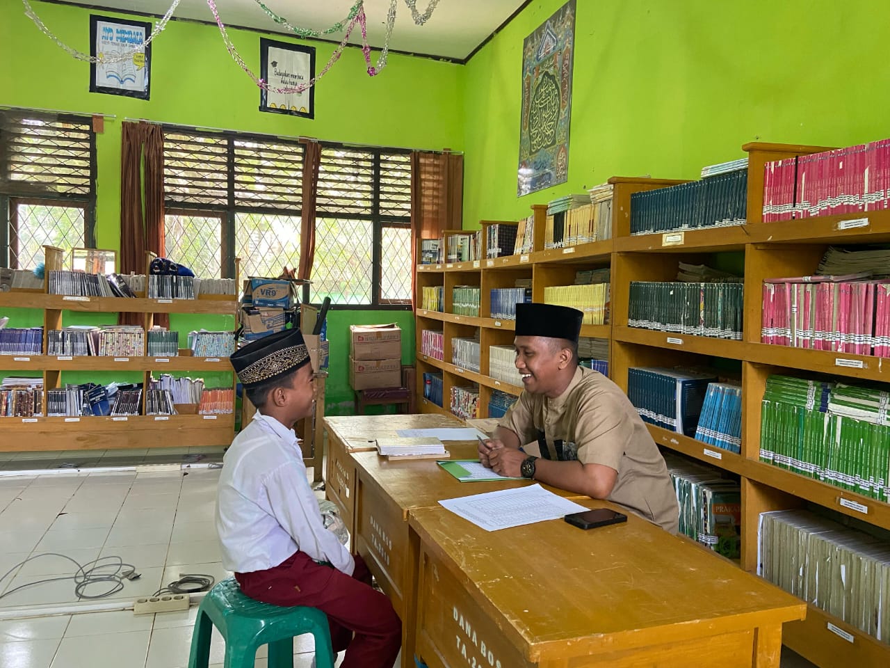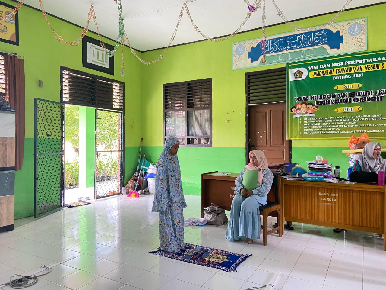 Lubuk Ruso (MTsN 5 Batang Hari) --- Panitia PPDB MTsN 5 Batang Hari hari ini laksanakan tes uji baca Al-Qur'an dan Shalat bagi calon peserta didik baru jalur prestasi dan afirmasi. Sabtu (12/04/2025). Kegiatan ini mundur dari jadwal yang telah ditentukan sebelumnya, dikarenakan banjir yang melanda madrasah dan lingkungan sekitarnya. Meski demikian, tidak menyurutkan semangat peserta tes.