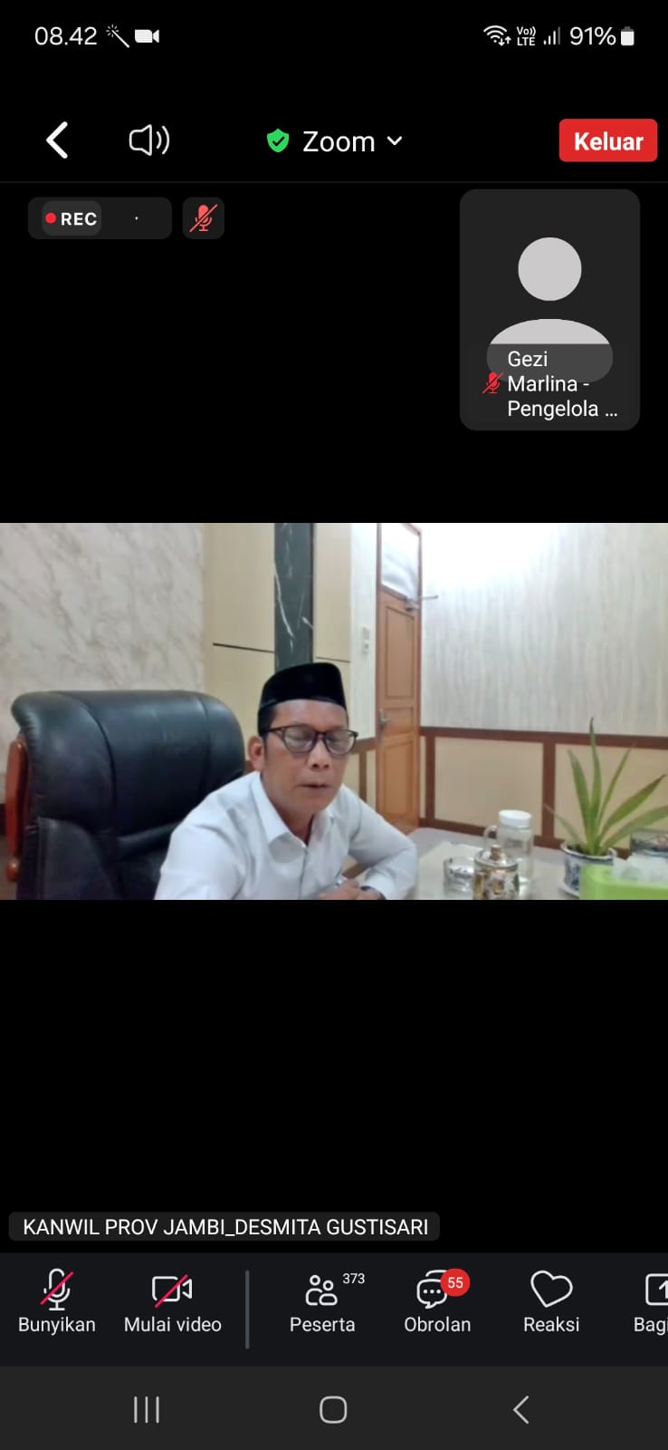 Pada kesempatan itu, Kabid Penmad Kemenag Provinsi Jambi mengingatkan peserta Zoom bahwa sebentar lagi kelulusan siswa madrasah. Karena itu dilaksanakan Zoom Meeting sebagai forum membahas residu NISN E-Ijazah bagi pemangku kepentingan.