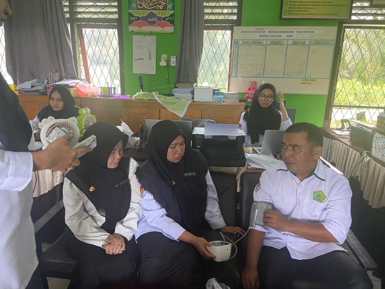 Lubuk Ruso (MTsN 5 Batang Hari) --- Beberapa majelis guru dan staf TU MTsN 5 Batang hari memeriksakan kesehatan rutin. Selasa (06/05/2025). Melalui kegiatan cek kesehatan ini, dapat untuk mengetahui kondisi tubuh dan akan segera berkonsultasi ke dokter puskesmas bila mendapati hasil pemeriksaan yang tidak normal. Tujuan dari dilaksanakannya pemeriksaan kesehatan ini agar guru serta tenaga kependidikan dapat mengetahui tingkat kesehatan melalui pemeriksaan darah, dan apabila secara awal mengetahui permasalahan kesehatan untuk dapat ditindak lanjuti dengan mengkonsultasikan kepada dokter atau tenaga kesehatan. Koordinator kesehatan MTsN 5 Batang Hari Asnawati, S. Ag menambahkan, pelaksanaan kegiatan ini agar guru dan tenaga kependidikan lebih siap dalam memberikan pelayanan kepada peserta didik dalam pembelajaran di madrasah.