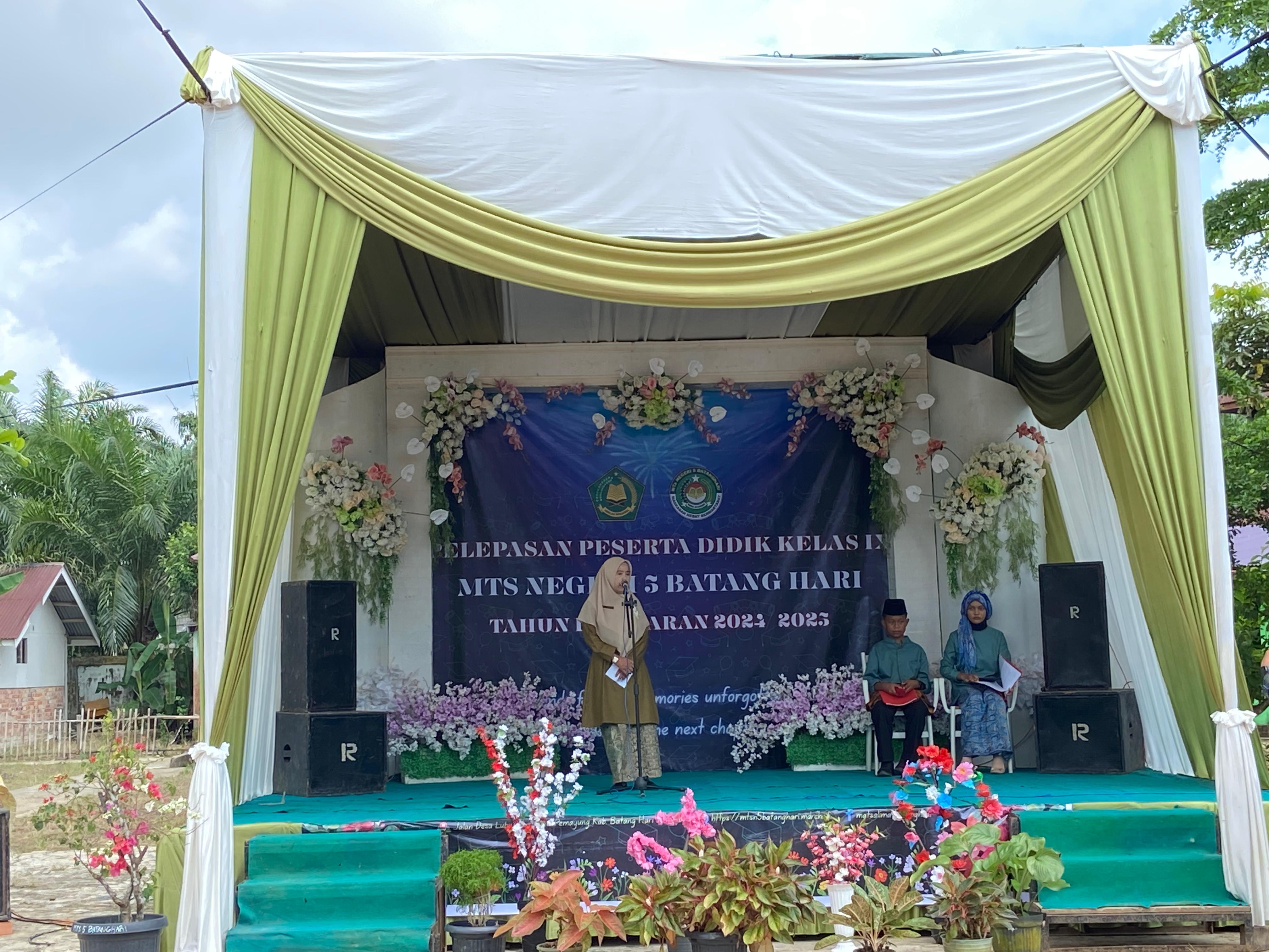 Lubuk Ruso (MTsN 5 Batanghari) --- Rabu, 21/05/2025, bertempat di halaman MTsN 5 Batanghari berlangsungnya kegiatan pelepasan siswa/i kelas IX MTsN 5 Batanghari tahun ajaran 2024/2025 yang berjumlah 78 orang.