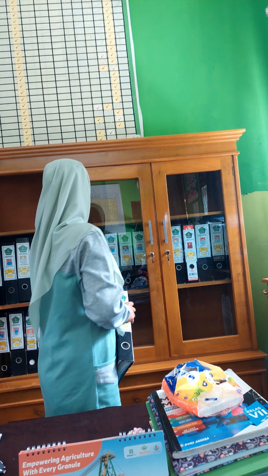 “Menyusun file madrasah di lemari memerlukan perencanaan dan sistematis. Sistem penyusunan yang jelas, menggunakan label yang mudah dibaca, dan manfaatkan folder atau kotak penyimpanan untuk melindungi dokumen. Kemudian melakukan inventarisasi dokumen dan pemeliharaan rutin pada lemari untuk menjaga kerapian dan keamanan dokumen.†tutur Eliza.