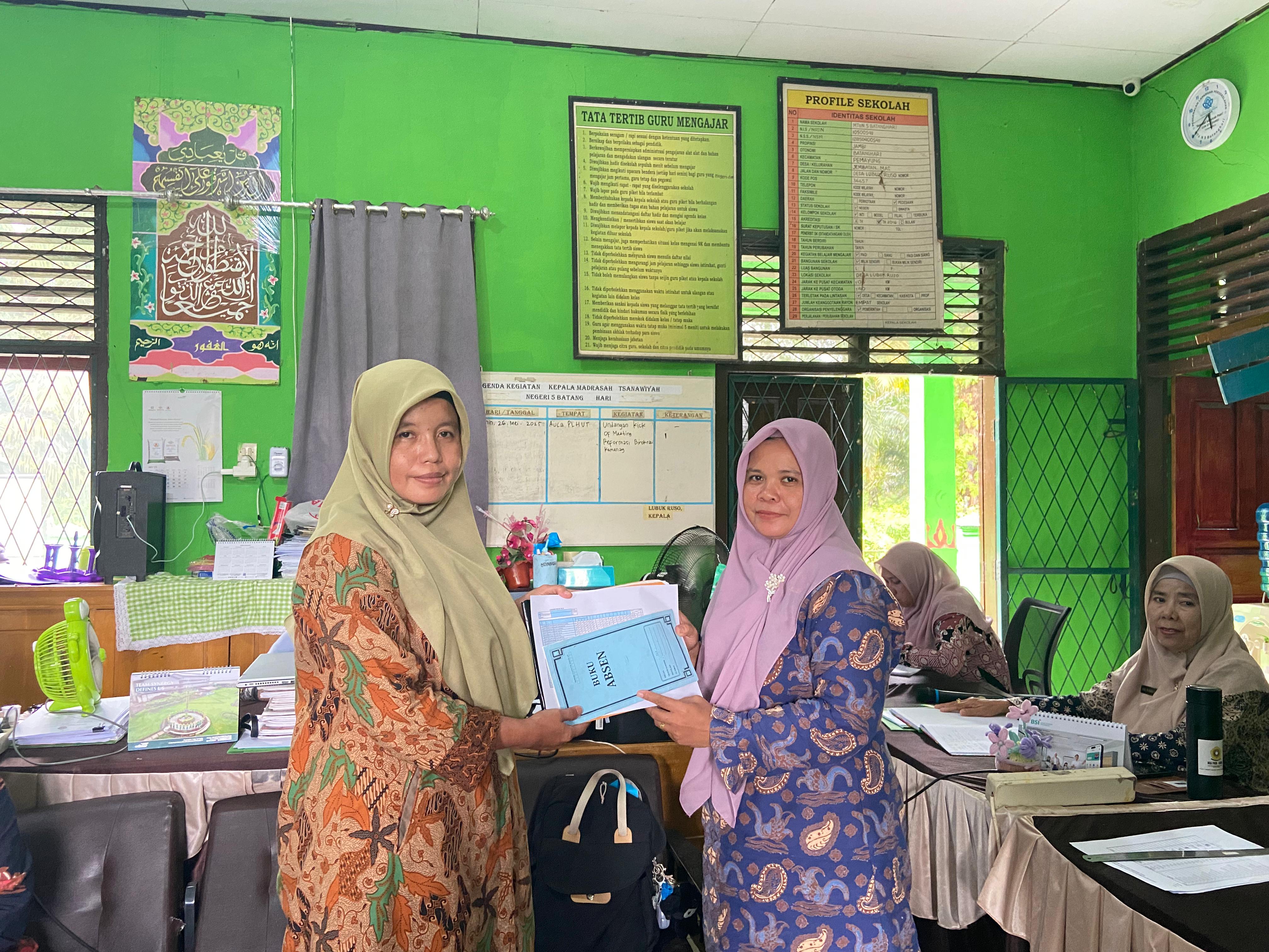 Adapun pegawai MTsN 5 Batang Hari yang menerima yaitu Eliza, A. Ma, selaku pegawai yang bertanggung jawab dalam pengadministrasian madrasah.