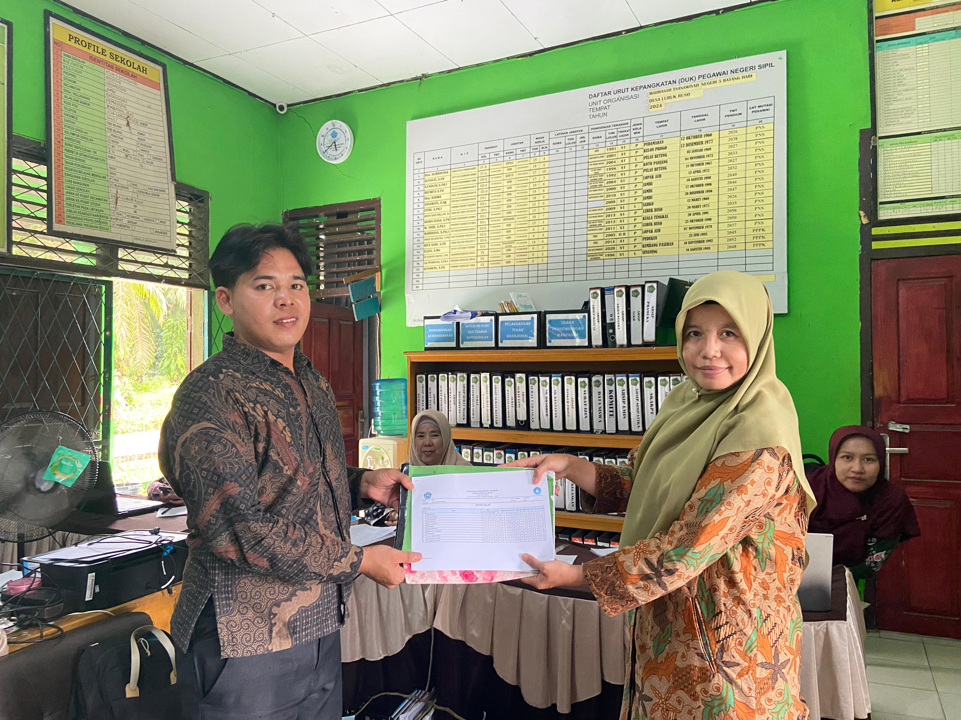 Lubuk Ruso (MTsN 5 Batang Hari)--- Selepas penetapan kelulusan peserta didik kelas IX tahun ajaran 2024/2025, Selanjutnya penyerahan dokumen kelas IX oleh wali kelas ke salah satu pegawai MTsN 5 Batang Hari. Sabtu (28/05/2025)
