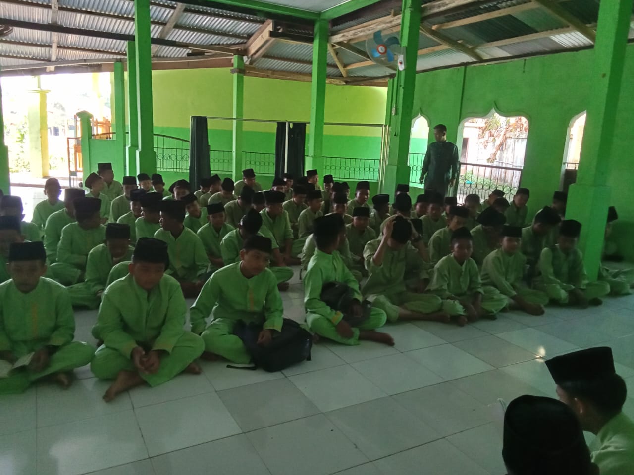 "Berhubung proses pembelajaran semester genap telah berakhir, maka hari ini merupakan Jumat terakhir kita menjalankan kegiatan rutin kita yaitu pembacaan surah yasin, tahlil, dan doa bersama. Pada kesempatan ini, mari kita berdoa bersama untuk hasil belajar kita selama semester genap ini. Semoga siswa-siswi semua mendapatkan hasil yang memuaskan." tutur Anwar Sadar, S. Pd. I, selaku pembina agama.