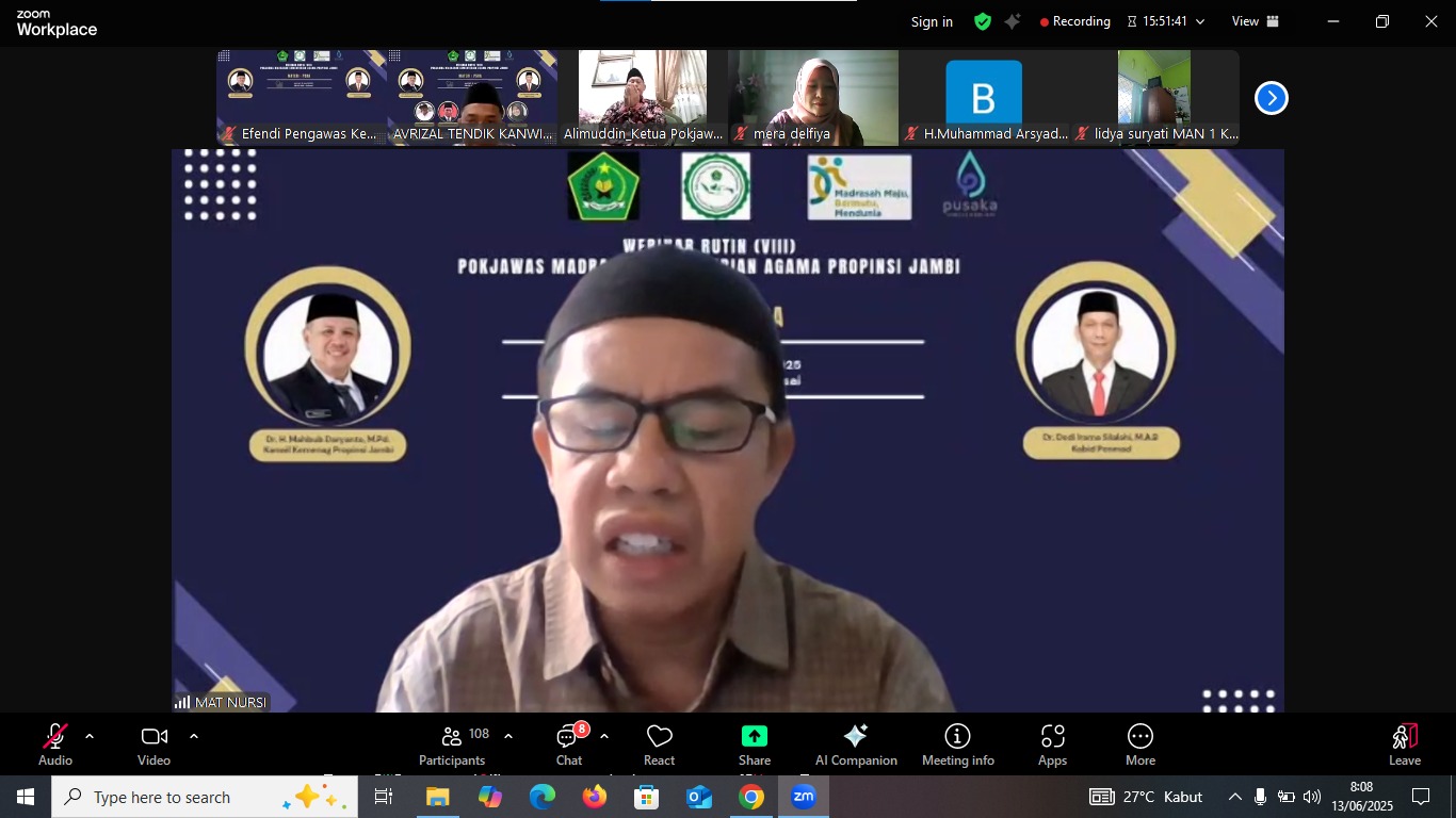 Webinar yang bertema P5RA ini, diikuti oleh peserta dari berbagai madrasah di Provinsi Jambi yang dimulai dari Jam 08.00 sd selesai, Jumat (13/06/2025).