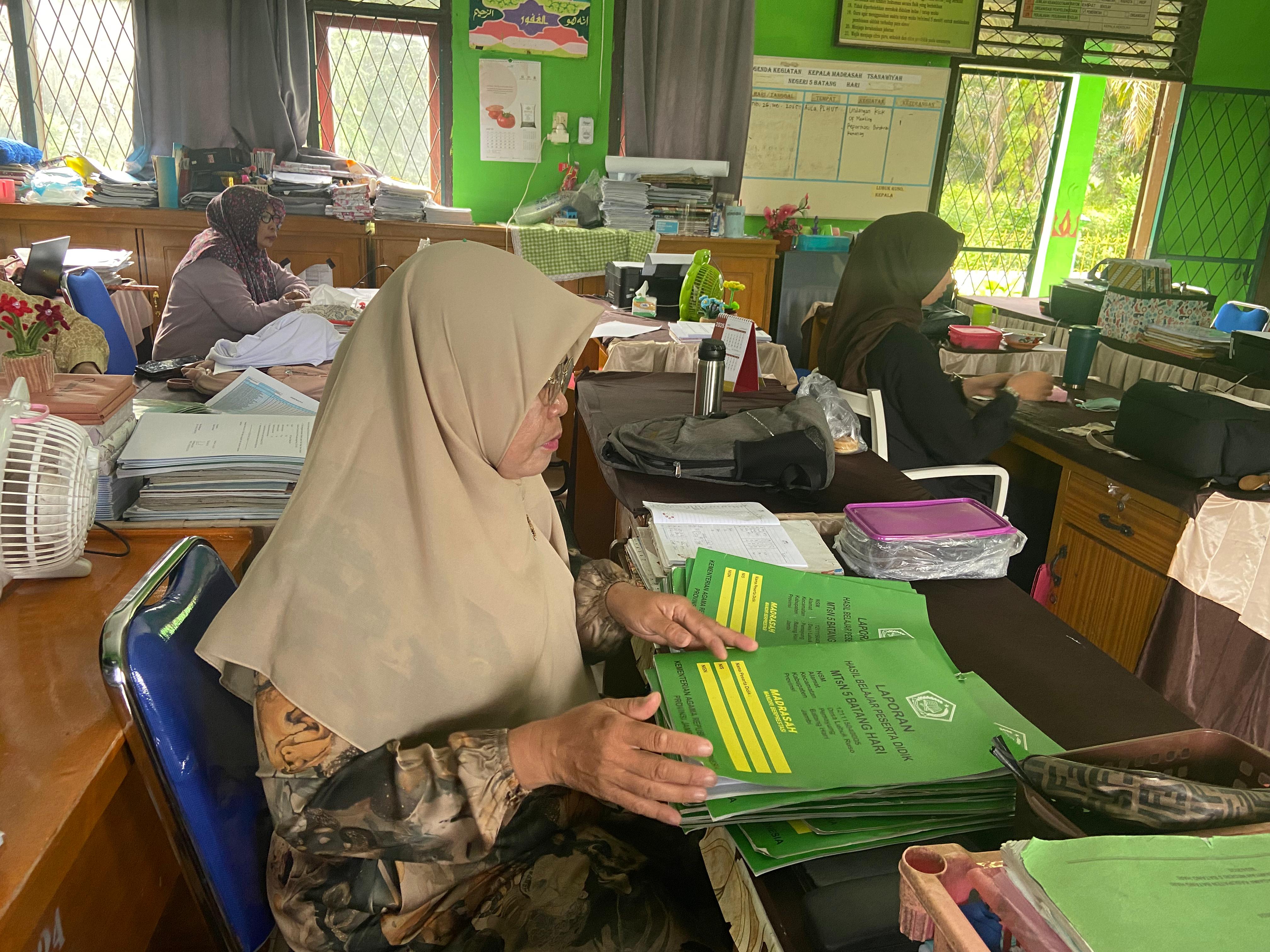 "Alhamdulillah raport semester genap kelas VII dan VIII telah selesai dan siap diserahkan kepada wali murid besok sabtu, 21 Juni 2025. Semoga raport ini bisa memberikan motivasi dan saran untuk perbaikan di semester berikutnya." tutur Anita Zulhayani, S. Pd, selaku waka kurikulum