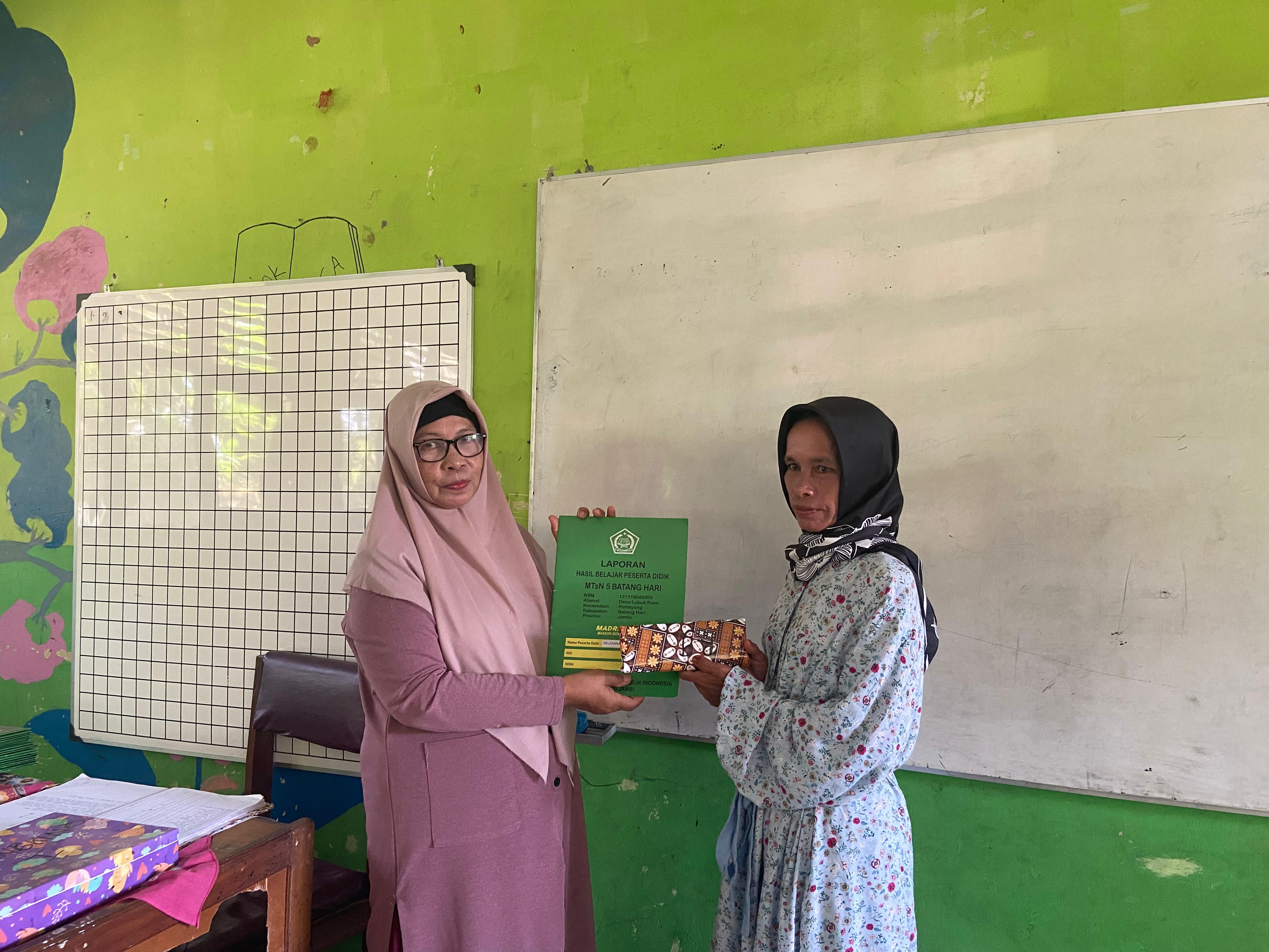 Lubuk Ruso (MTsN 5 Batang Hari) --- MTsN 5 Batang Hari melaksanakan pembagian laporan hasil belajar atau raport peserta didik semester genap Tahun Pelajaran 2024/2025 pada Sabtu (21/06/2025). Dilaksanakan mulai pukul 09.30 wib dan dihadiri oleh wali murid kelas VII dan VIII.
