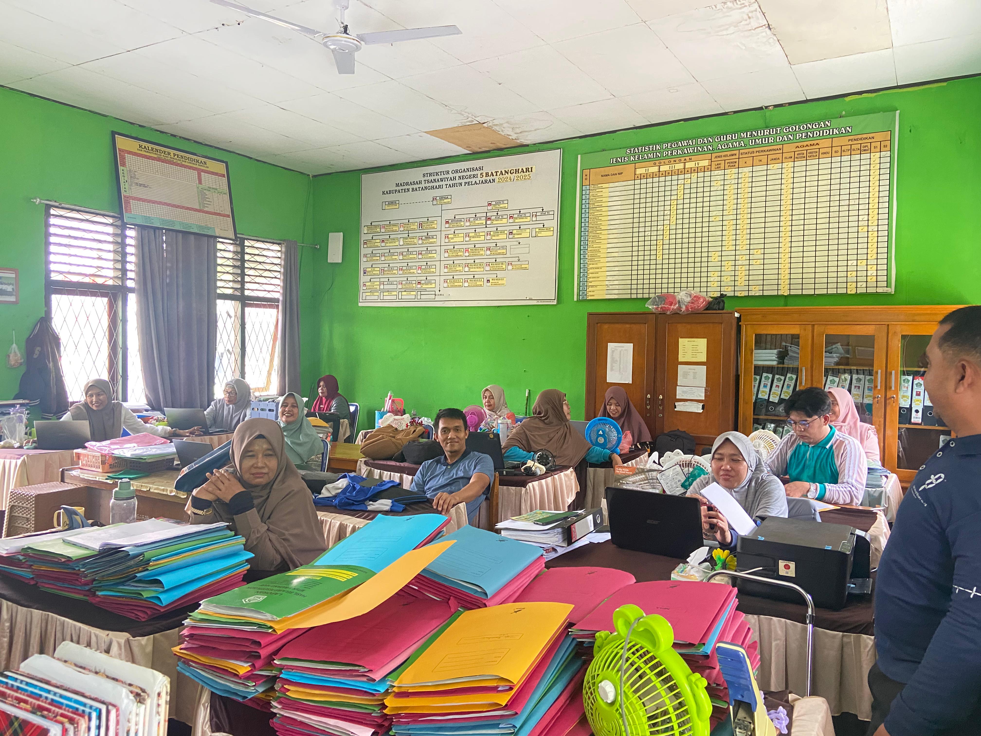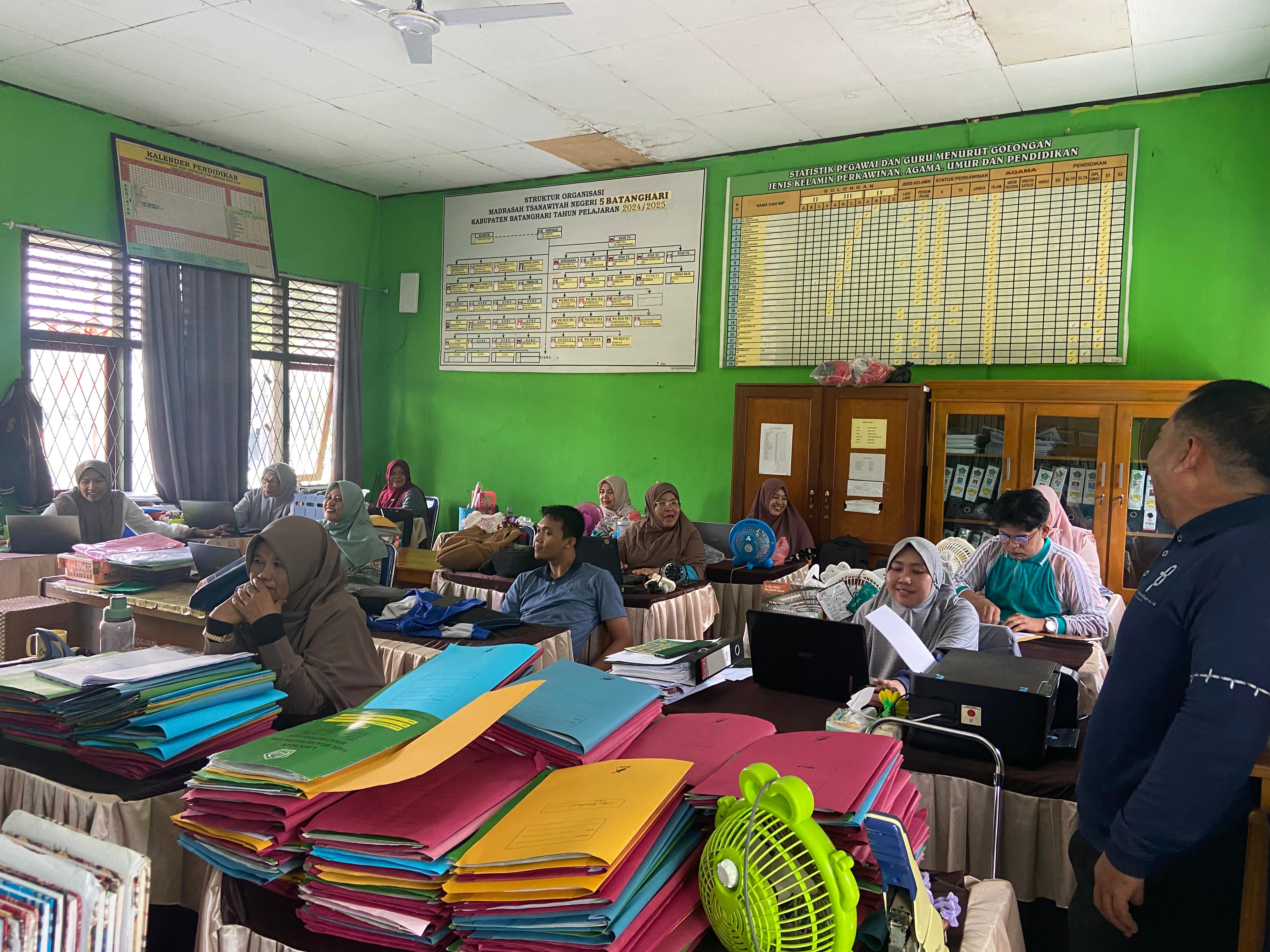 Lubuk Ruso (MTsN 5 Batang Hari) --- Menjadi seorang pendidik sudah sejatinya harus memiliki berbagai perangkat guna menunjang kesiapan proses Kegiatan Belajar Mengajar (KBM). Hal itu pulalah yang menjadikan pihak guru di Madrasah Tsanawiyah Negeri (MTsN) 5 Batang Hari tampak sibuk guna mempersiapkan segala kebutuhan perangkat pembelajaran baik dari segi kelengkapan administrasi hingga penilaian tahun pelajaran 2025/2026. Sabtu (12/07/2025)