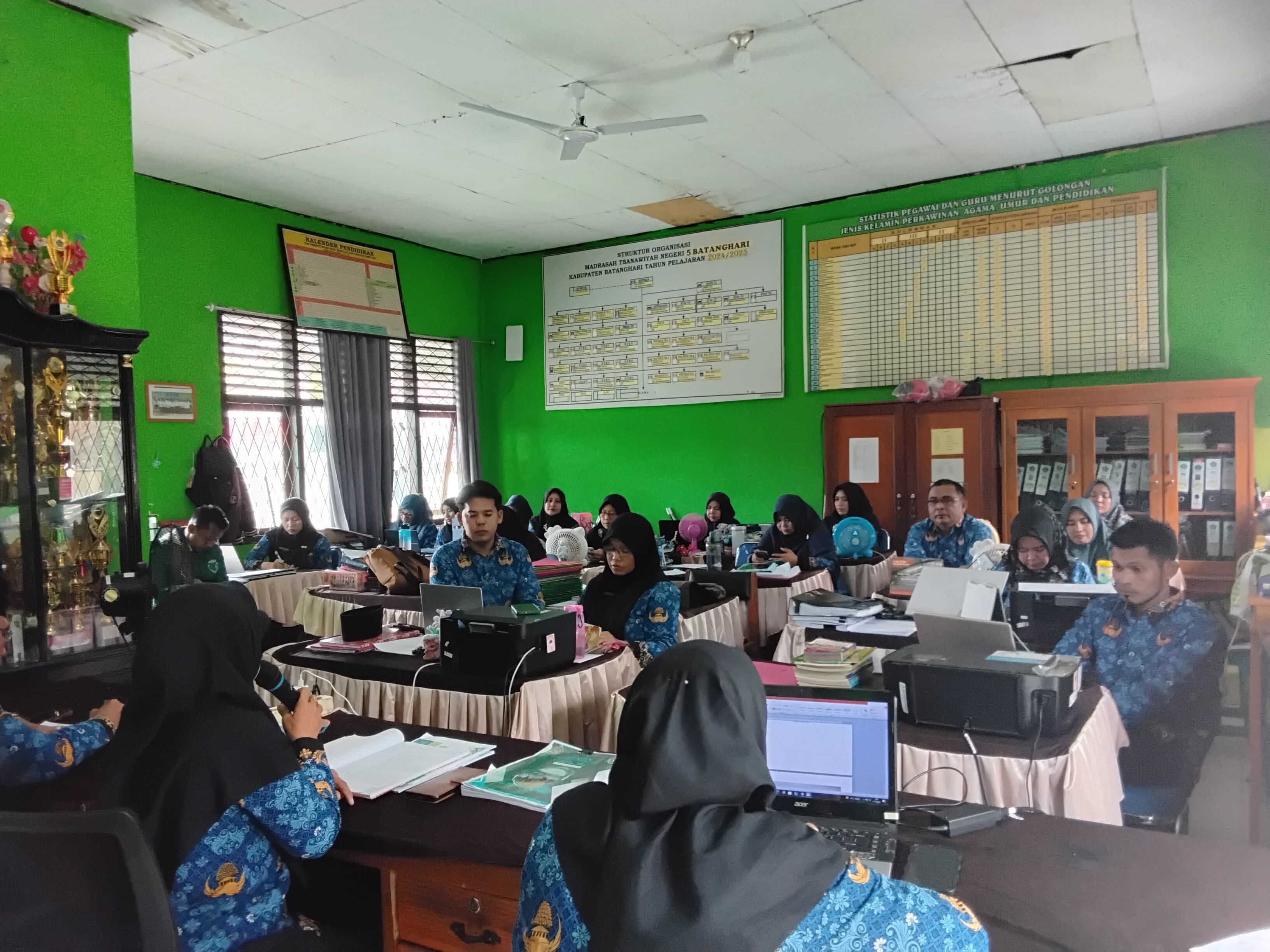 Lubuk Ruso (MTsN 5 Batang Hari) --- MTsN 5 Batang Hari menggelar rapat awal semester ganjil tahun ajaran 2025/2026 di kantor majelis guru dan staf TU, Kamis (17/07/25). Kegiatan ini dihadiri oleh seluruh guru dan tenaga kependidikan sebagai langkah awal menyambut tahun ajaran baru.