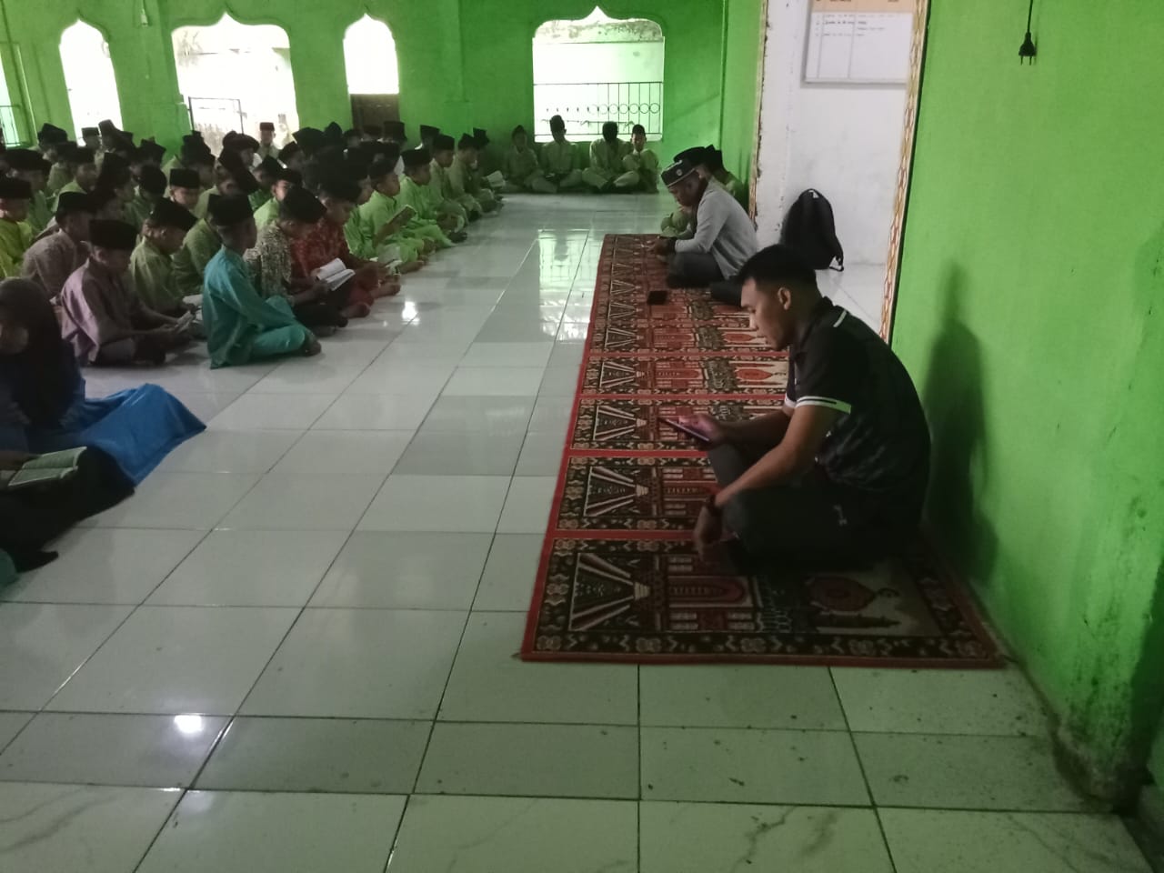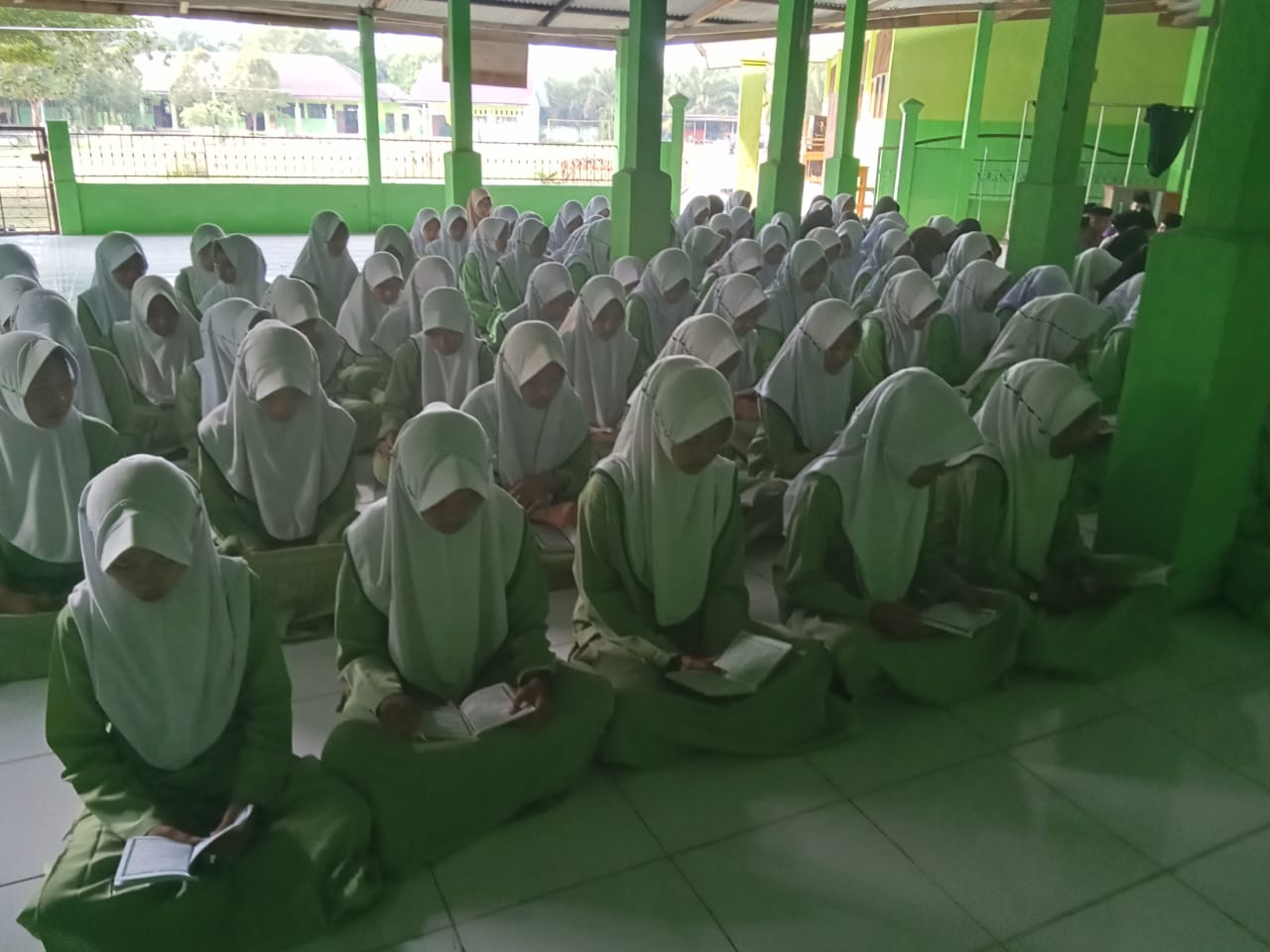 Lubuk Ruso (MTsN 5 Batang Hari) --- Jum'at (18/07/25) pagi tepat pukul 07.00 WIB, seluruh Siswa/i MTsN 5 Batang Hari, Guru beserta staf melaksanakan yasinan bersama perdana di awal semester ganjil tahun ajaran 2025/2026 di Musholla Miftahul Jannah. Kegiatan yang sudah menjadi agenda rutin bagi seluruh siswa/i ini, membaca surah yasin, tahlil dan berdo'a bersama disetiap hari Jum'at pagi sebelum pelajaran dimulai. Hal ini sebagai bagian pendidikan karakter yang diterapkan madrasah tersebut kepada siswanya.