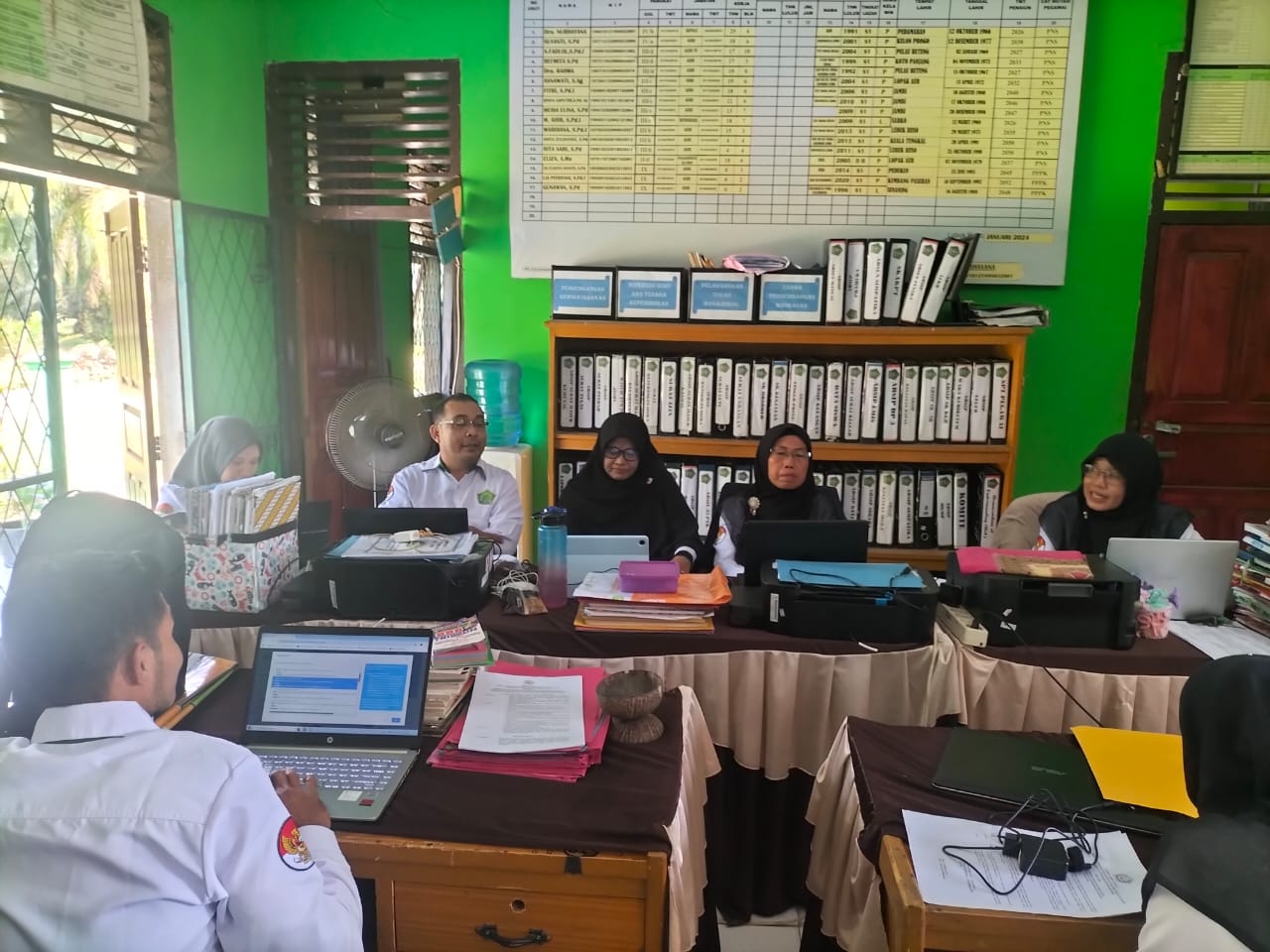 Ada 5 Staf TU PPPK dan 1 guru CPNS PJOK. Mereka adalah Hendra Gunawan, S. Pd. I, Nurul Ikhsan, S. Pd. I, Yelli Demiati, S.Pt, Gezi Marlina, Am. Kep, Ita Diana, dan Adi Gunawan, S. Pd. Mereka dengan fokus mendengarkan arahan dan bimbingan bu Eliza demi terselesainya input RHK.