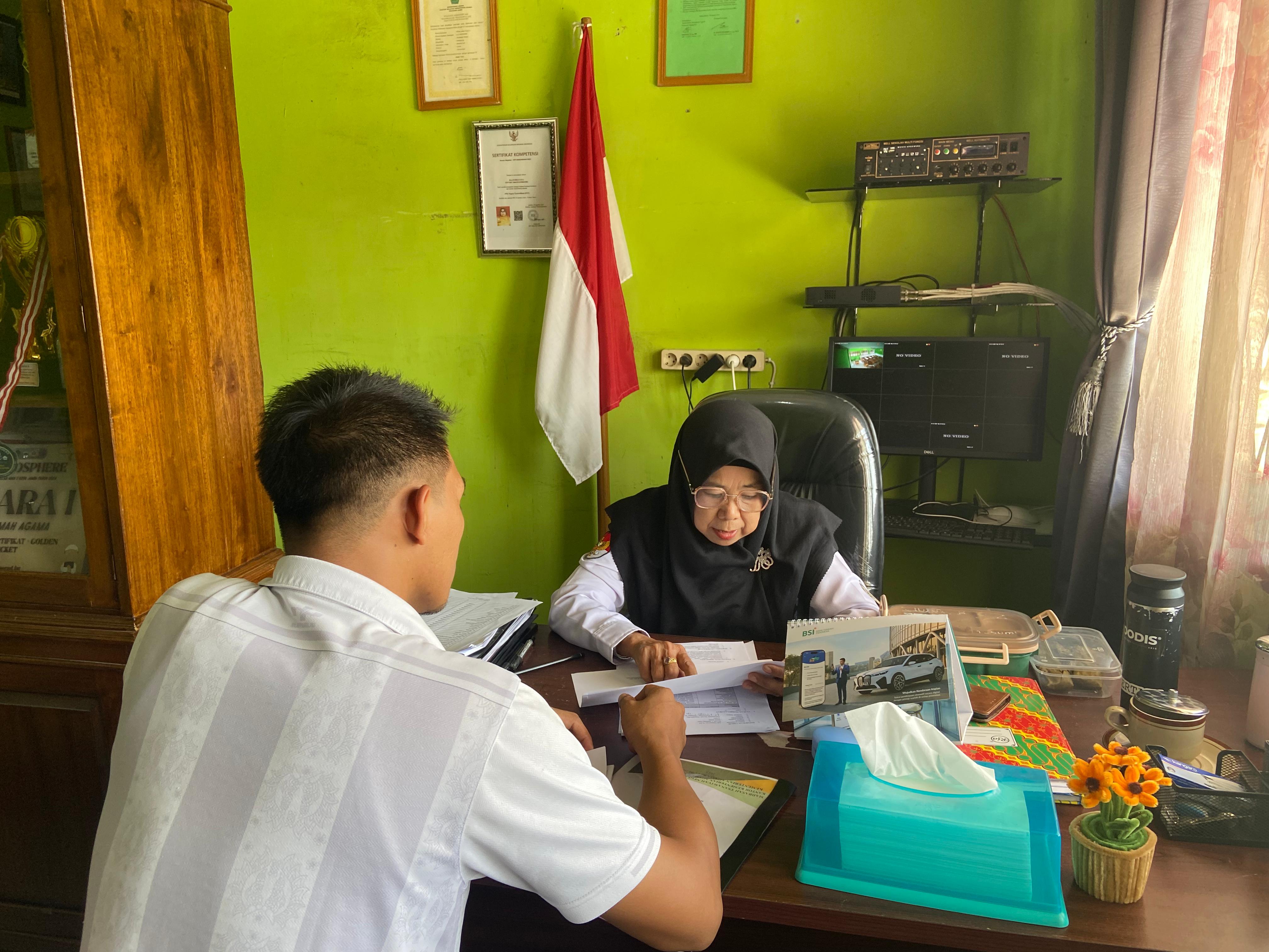 Lubuk Ruso (MTsN 5 Batang Hari0 --- Supervisi perangkat pembelajaran adalah proses pemeriksaan dan penilaian terhadap kelengkapan, kesesuaian, dan kualitas perangkat pembelajaran yang digunakan guru dalam proses belajar mengajar. Perangkat pembelajaran meliputi berbagai dokumen seperti silabus, RPP (Rencana Pelaksanaan Pembelajaran), bahan ajar, instrumen penilaian, dan lain-lain. Sabagai guru baru di MTsN 5 Batang Hari, Adi Gunawan, S. Pd perdana disupervisi oleh Kepala madrasah. Senin (21/07/25)