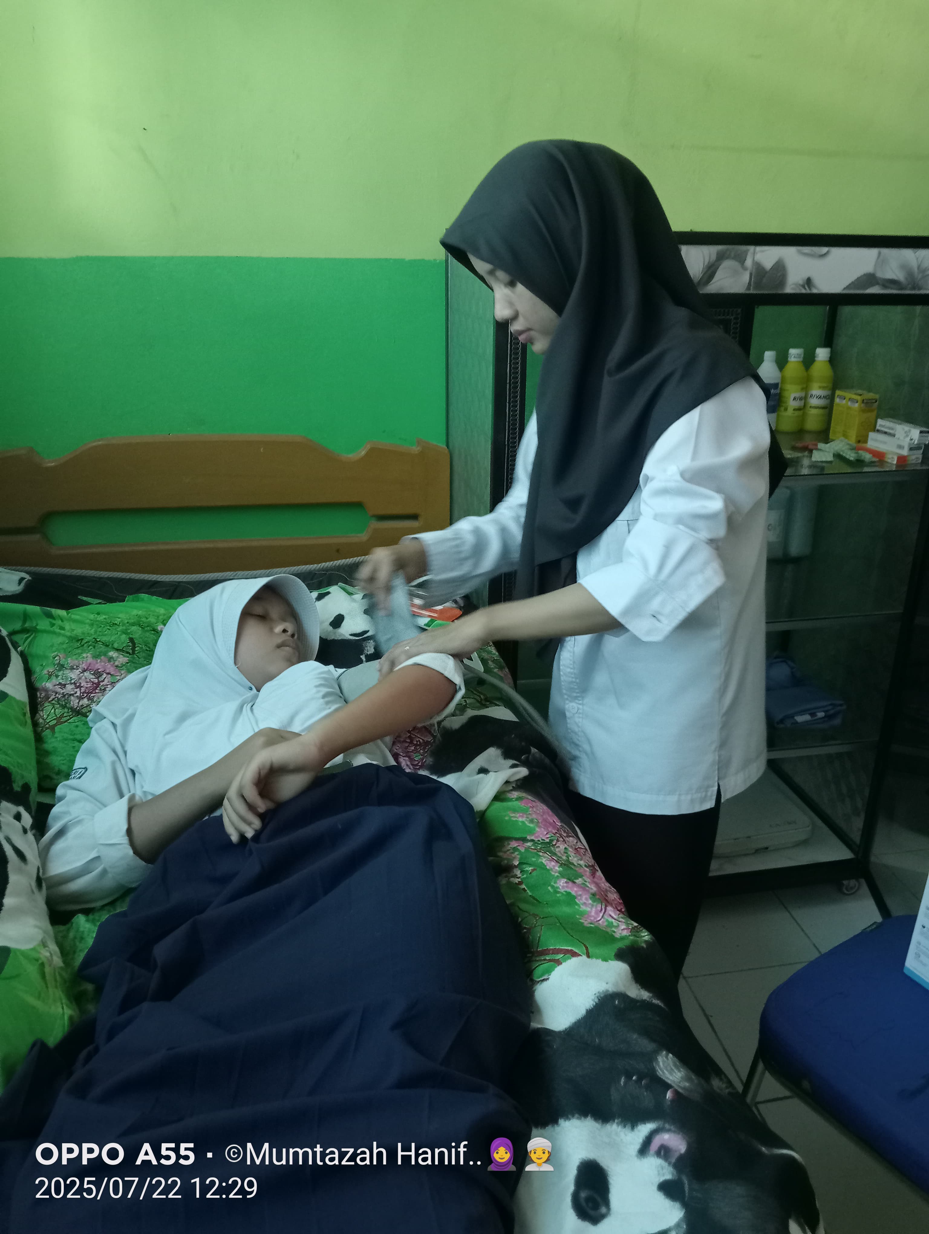 Lubuk Ruso (MTsN 5 Batang Hari) --- Petugas Unit Kesehatan Madrasah (UKM) MTsN 5 Batang Hari menunjukkan kesigapan luar biasa dalam menangani siswa yang jatuh sakit. Cuaca yang panas, pola makan yang tidak teratur, diduga menjadi penyebab utama siswa yang mengalami gangguan kesehatan.