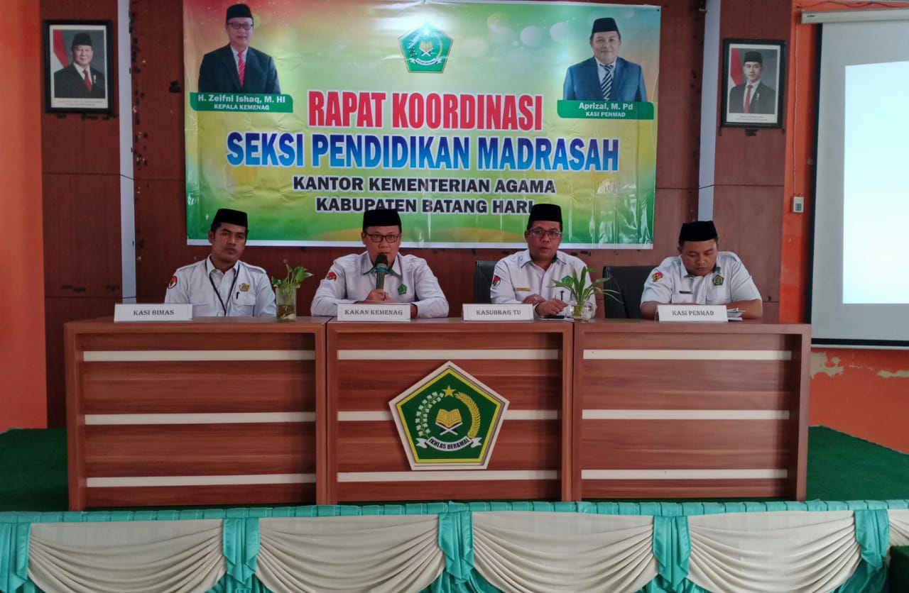 Lubuk Ruso (MTsN 5 Batang Hari) --- Kepala MTsN 5 Batang Hari Ikuti rakor dengan Seksi Pendidikan Madrasah Kantor Kementerian Agama Kabupaten Batang Hari pada Selasa 22 Juli 2025 di Aula Gedung Pusat Layanan Haji dan Umrah Terpadu.