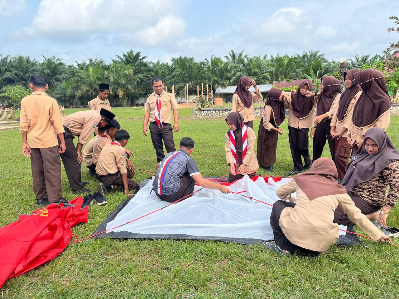 Lubuk Ruso (MTsN 5 Batang Hari) --- Pramuka Madrasah Tsanawiyah Negeri (MTsN) 5 Batang Hari melaksanakan latihan mendirikan tenda untuk mempersiapkan para siswa untuk mengikuti Jambore Ranting Kecamatan Pemayung, Kamis (31/07/2025).