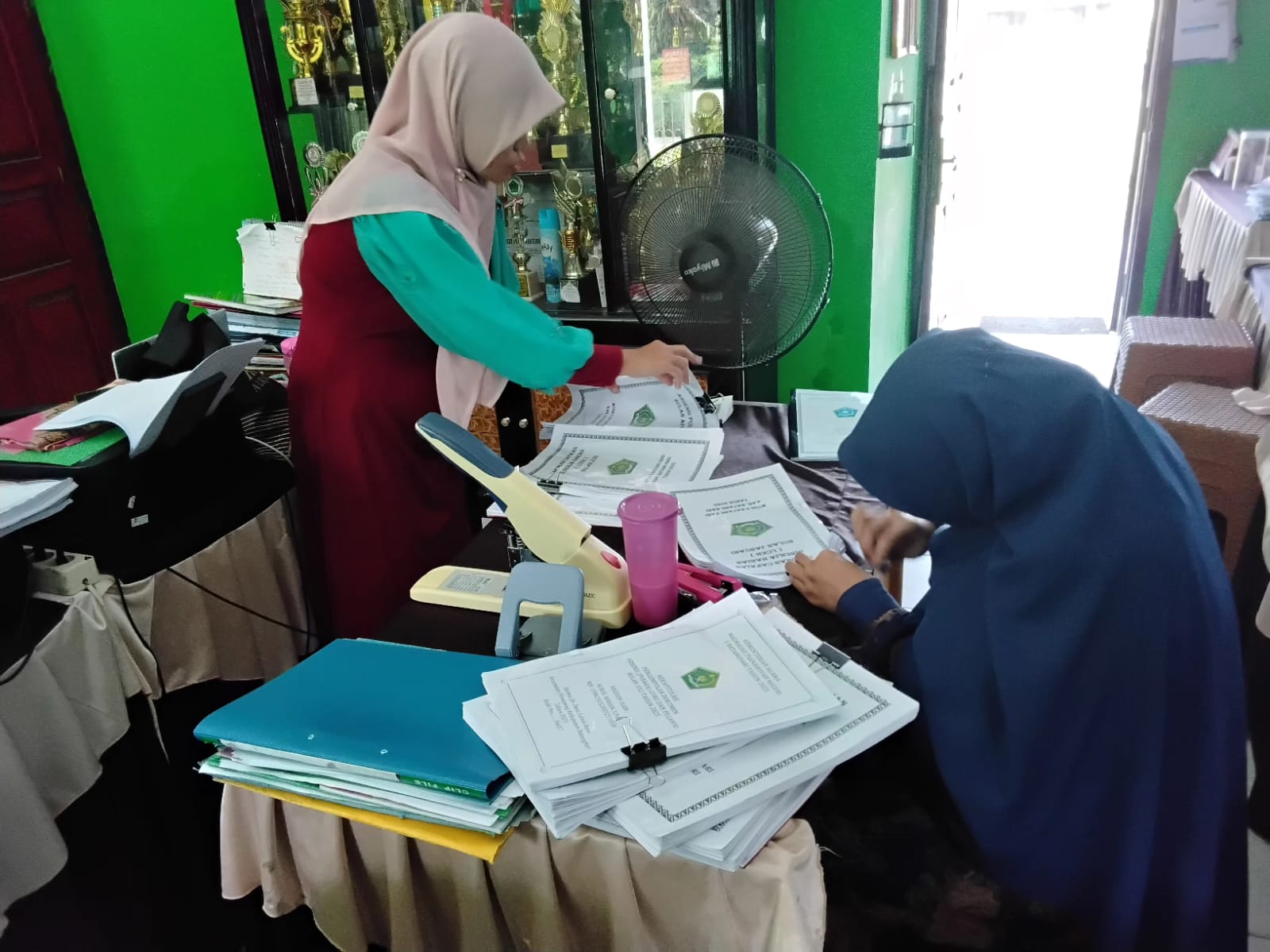 Lubuk Ruso (MTsN 5 Batang Hari) --- Staf Tata Usaha MTsN 5 Batang Hari tingkatkan pelayanan administrasi madrasah. Pelayanan administrasi yang baik oleh staf tata usaha (TU) di madrasah sangat penting untuk kelancaran operasional dan keberlangsungan pendidikan. Staf TU berperan penting dalam mengelola berbagai aspek administrasi, mulai dari pengelolaan data siswa, keuangan, sarana prasarana, hingga surat menyurat. Pelayanan administrasi yang efisien dan efektif akan mendukung kegiatan belajar mengajar, meningkatkan mutu pendidikan, serta memberikan kepuasan bagi seluruh warga madrasah.