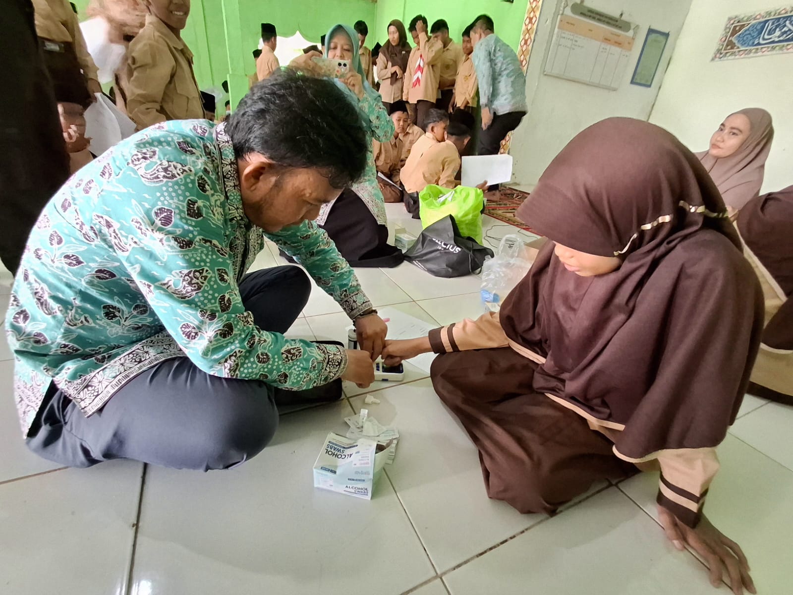 Selain pembagian TTD, dilakukan juga pemeriksaan kadar HB untuk memantau kondisi kesehatan dan mencegah terjadinya anemia. Pemeriksaan dilakukan secara bergiliran dengan menggunakan alat pemeriksa khusus oleh petugas kesehatan.