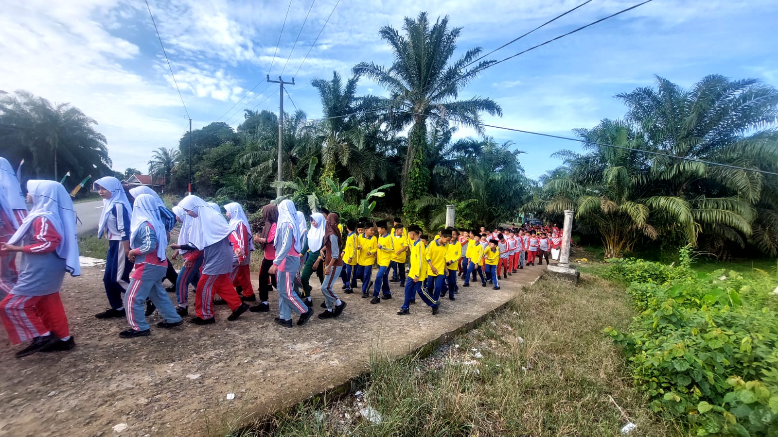 Kegiatan jalan sehat tersebut dilepas secara resmi oleh Kepala MTsN 5 Batang Hari, Dra. Nurhayana, di halaman depan madrasah. Seluruh peserta yang terdiri dari guru, pegawai, dan siswa tampak antusias mengikuti jalur yang telah ditentukan sambil mengenakan pakaian bernuansa merah putih.