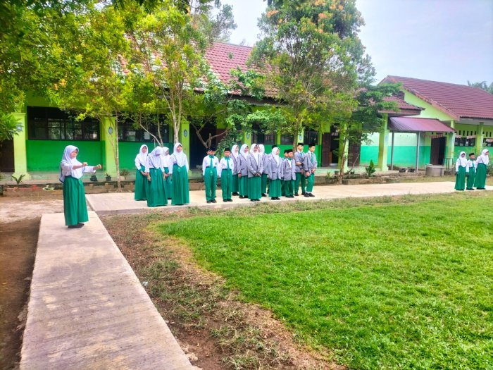 Batang Hari – Suasana upacara bendera di MTsN 5 Batang Hari pada Senin (15/9/2025) terasa begitu khidmat dan penuh semangat ketika seluruh peserta upacara menyanyikan Mars Madrasah secara serentak. Lagu kebanggaan madrasah tersebut berkumandang dengan lantang, menciptakan gema yang menggetarkan halaman madrasah.