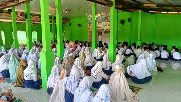 Batang Hari – MTsN 5 Batang Hari kembali menggelar kegiatan penyuluhan rutin bersama Penyuluh Agama Kecamatan Pemayung, Amat Sobirin, S. Sos. I, pada Selasa (16/9/2025). Kegiatan ini dilaksanakan setelah shalat Dzuhur berjamaah yang diikuti oleh seluruh siswa-siswi bertempat di Musholla Miftahul Jannah MTsN 5 Batang Hari.