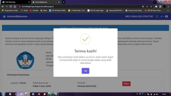 Pengisian Sulinjar merupakan salah satu bentuk evaluasi lingkungan belajar yang penting untuk mengetahui kondisi aktual di sekolah. Hasil survei ini nantinya akan menjadi acuan dalam pengambilan kebijakan dan perbaikan sistem pendidikan di MTsN 5 Batang Hari. (Humas)