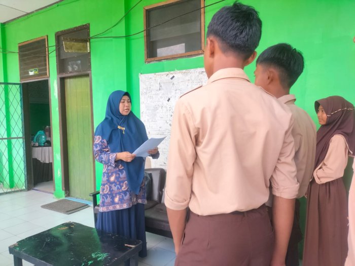 Batang Hari – Waka Humas MTsN 5 Batang Hari memberikan pengarahan kepada para siswa terkait persiapan pencairan beasiswa dari Badan Amil Zakat Nasional (BAZNAS), Kamis (18/9/2025).