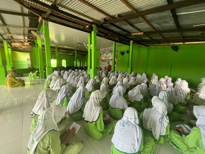Suasana musholla tampak tenang dan tertib, para siswa duduk rapi dengan seragam islami sambil mengikuti lantunan ayat suci. Selain sebagai amalan rutin, kegiatan ini juga menjadi ajang mempererat kebersamaan antar siswa serta meningkatkan kecintaan terhadap Al-Qur’an.
