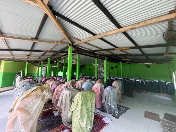 Batang Hari – Dalam rangka membiasakan siswa untuk selalu melaksanakan ibadah tepat waktu, MTsN 5 Batang Hari menggelar kegiatan rutin salat Zuhur berjamaah yang dilaksanakan setiap hari di musholla madrasah. Rabu (24/9/25)