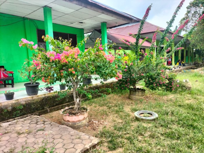 Batang Hari, 27 September 2025 – Suasana di MTsN 5 Batang Hari kini semakin asri dan indah dengan hadirnya taman bunga yang ditata di lingkungan madrasah. Berbagai jenis bunga dengan warna-warni cerah menghiasi halaman dan teras, menciptakan nuansa segar yang menenangkan bagi warga madrasah.