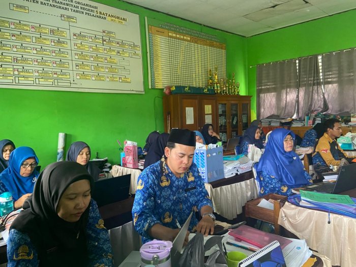 Batang Hari – MTsN 5 Batang Hari mendapat kunjungan dari Pengawas Madrasah dalam rangka kegiatan pembinaan kepada seluruh guru dan pegawai, Rabu (1/10/2025). Kegiatan yang dilaksanakan di ruang guru dan pegawai ini bertujuan untuk meningkatkan kualitas kinerja pendidik dan tenaga kependidikan sekaligus memperkuat kedisiplinan serta profesionalisme dalam menjalankan tugas.