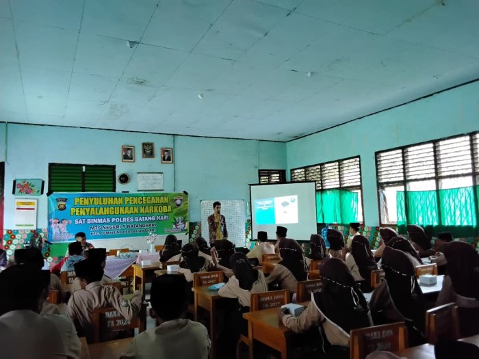 Pemayung (MTsN 5 Batang Hari)_------Dalam rangka memberikan edukasi dan pencegahan bahaya narkoba bagi generasi muda, Kepolisian Resor (Polres) Batang Hari menyelenggarakan penyuluhan tentang narkoba di MTsN 5 Batang Hari, Kamis (02/10/2025).