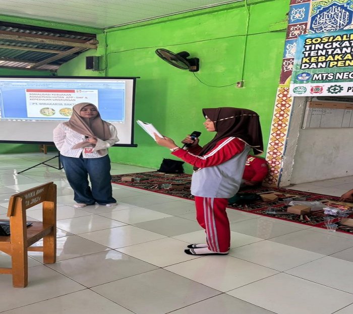 Batang Hari � MTsNegeri 5 Batang Hari menggelar kegiatan Sosialisasi dan Edukasi Pendidikan Tingkat Menengah tentang Pengendalian Kebakaran Hutan dan Lahan serta Pendidikan Konservasi, bekerja sama dengan PT. Wirakarya Sakti Distrik III. Kegiatan ini berlangsung pada Sabtu, 4 Oktober 2025 di Musholla Miftahul Jannah MTsN 5 Batang Hari.