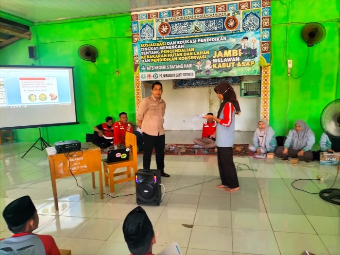Batang Hari, 4 Oktober 2025 — Suasana antusias tampak mewarnai kegiatan Sosialisasi dan Edukasi Pendidikan Tingkat Menengah tentang Pengendalian Kebakaran Hutan dan Lahan serta Pendidikan Konservasi yang digelar di MTsNegeri 5 Batang Hari. Kegiatan ini terlaksana atas kerja sama antara madrasah dengan PT. Wirakarya Sakti (WKS) Distrik III dan berlangsung di Musholla Miftahul Jannah.