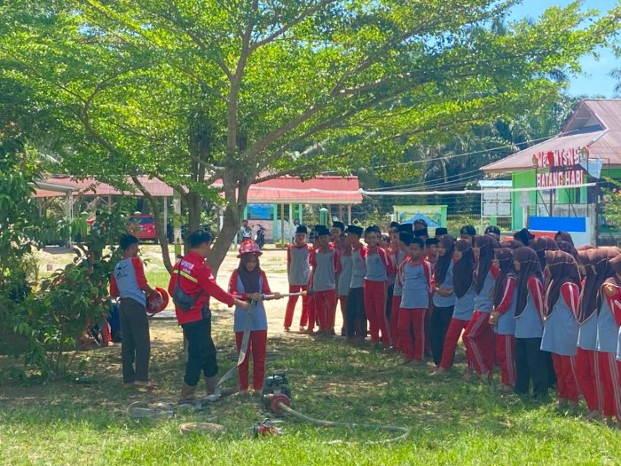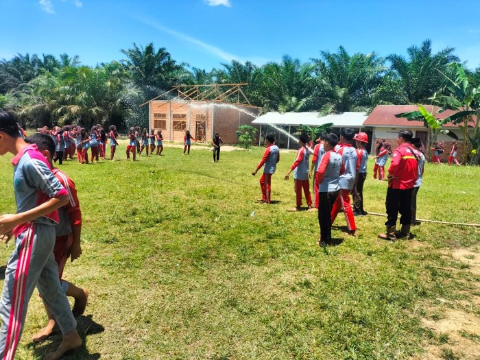 Perwakilan dari PT. WKS Distrik III menjelaskan bahwa kegiatan simulasi ini bertujuan agar peserta didik tidak hanya memahami teori, tetapi juga memiliki keterampilan dasar dalam pencegahan dan penanggulangan kebakaran.
