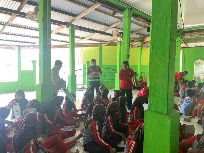 Batang Hari, 4 Oktober 2025 — Siswa MTsNegeri 5 Batang Hari tampak antusias saat menerima cendera mata berupa papan klip belajar dari pihak PT. Wirakarya Sakti (WKS) Distrik III. Kegiatan ini berlangsung usai pelaksanaan Sosialisasi dan Edukasi Pengendalian Kebakaran Hutan dan Lahan serta Pendidikan Konservasi yang digelar di madrasah tersebut.