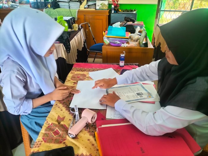 Batang Hari, 15 Oktober 2025 � Staf Tata Usaha (TU) MTsN 5 Batang Hari melaksanakan kegiatan pelayanan sidik jari ijazah sekaligus penyerahan ijazah kepada alumni siswa kelas IXA tahun pelajaran 2024/2025. Kegiatan ini berlangsung di ruang majelis guru dan TU madrasah dengan suasana tertib dan lancar.