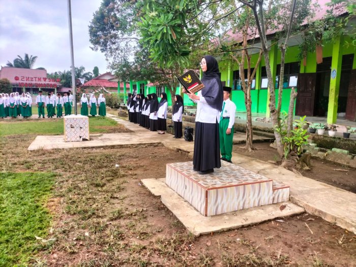 Batang Hari — MTsN 5 Batang Hari melaksanakan upacara bendera rutin pada Senin, 20 Oktober 2025, di lapangan madrasah. Petugas upacara kali ini adalah siswa kelas IXC, sementara yang bertindak sebagai pembina upacara yaitu Meliyana Eka Pratiwi, S.Pd.