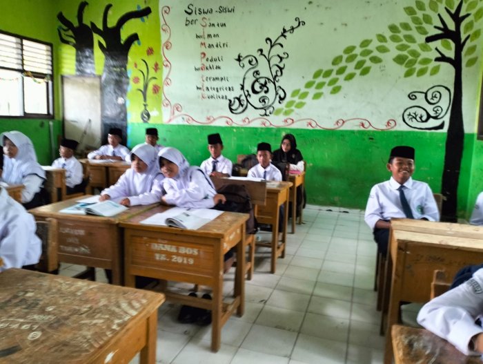 Supervisi dilakukan di kelas VIIC dengan suasana belajar yang aktif dan kondusif. Ibu Mardiana tampak melaksanakan kegiatan belajar mengajar dengan penuh semangat, sementara siswa-siswi mengikuti pelajaran dengan antusias. Dalam kegiatan tersebut, supervisor melakukan observasi langsung terhadap proses pembelajaran, metode pengajaran, serta interaksi guru dan peserta didik di dalam kelas.