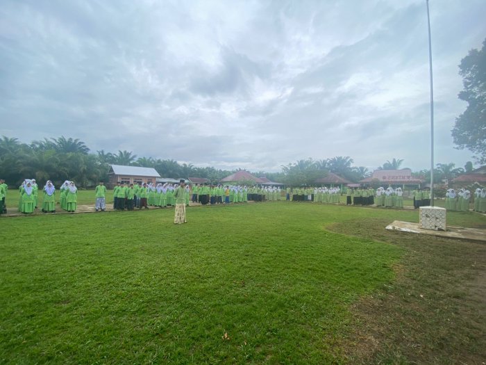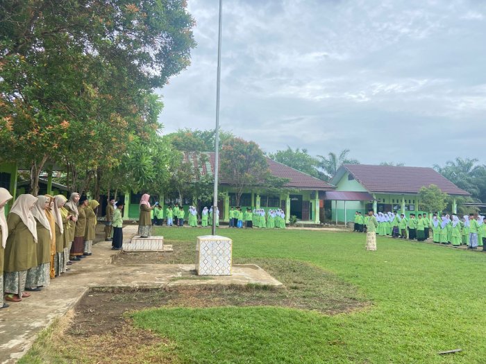 Batang Hari, 22 Oktober 2025 – Dalam rangka memperingati Hari Santri Nasional tahun 2025, MTsN 5 Batang Hari menggelar apel pagi yang diikuti oleh seluruh dewan guru, staf, dan siswa di halaman madrasah. Kegiatan berlangsung dengan khidmat dan penuh semangat kebangsaan.